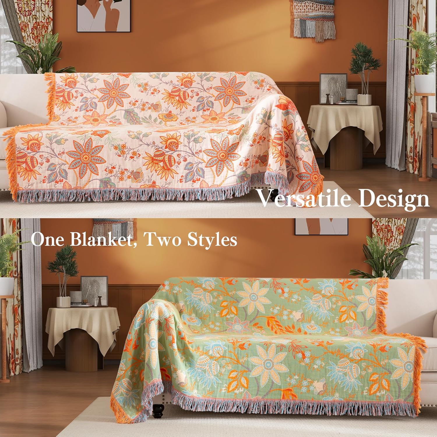 - Endless Uses: This large, multi-use blanket is perfect for any setting. Use it as a cozy bedspread, bed runner, or coverlet on your queen, full, or twin bed, or as a stylish tapestry on your sofa, chair, or in your bedroom. Take it outdoors for picnics, camping, or beach days — it’s big enough to cover you on the grass or sand. Whether at home or on the go, this blanket adds comfort and charm wherever you need it, offering both beauty and practicality in every setting.