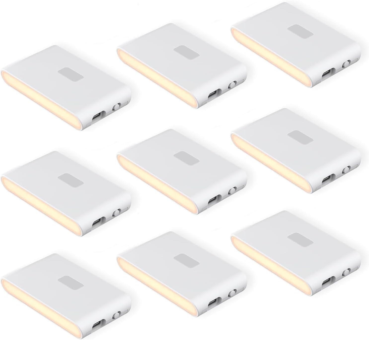 Rechargeable Night Lights with Dusk to Dawn & Motion Sensors, Warm & Soft White Stair Lights for Bathroom, Hallway, Linkable, Magnetic Mount, 9 Pack