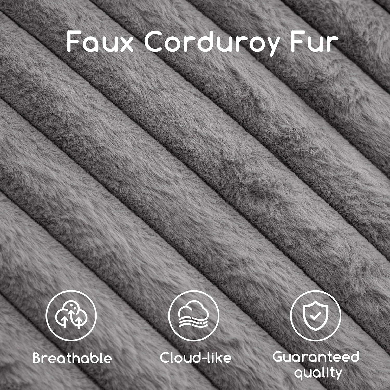 HIGOGOGO Round Stuffed Pouf Ottoman, Stripe Faux Fur Poufs with Foam Chunk Filling, Furry and Fluffy Pouf Foot Stool Storage Ottoman, 26 X 18 Floor Poufs Foot Rest for Living Room, Grey