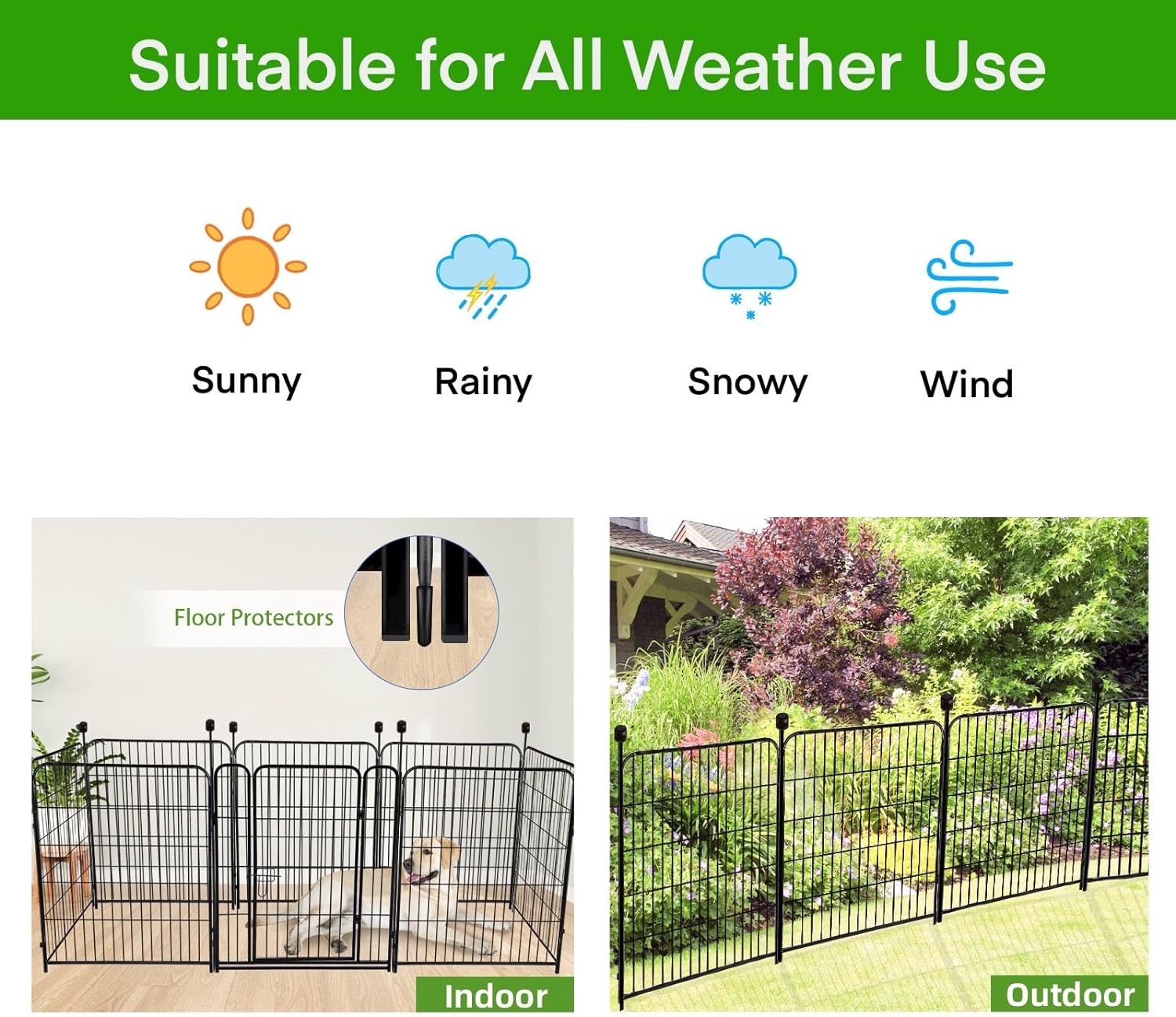 - Suitable for Many Needs: When Used Outdoors, This Fence Can be Used as A Garden Fences and Borders for Dogs, Beautiful and Safe. It Can also be Used as An Animal Barrier Fence to Prevent Your Pets from Escaping Your Yard. This Fence Can also be Used as An Indoor Dog Fence, and We've Equipped Each Pole with A Rubber Cover to Prevent It from Scratching Your Floor
