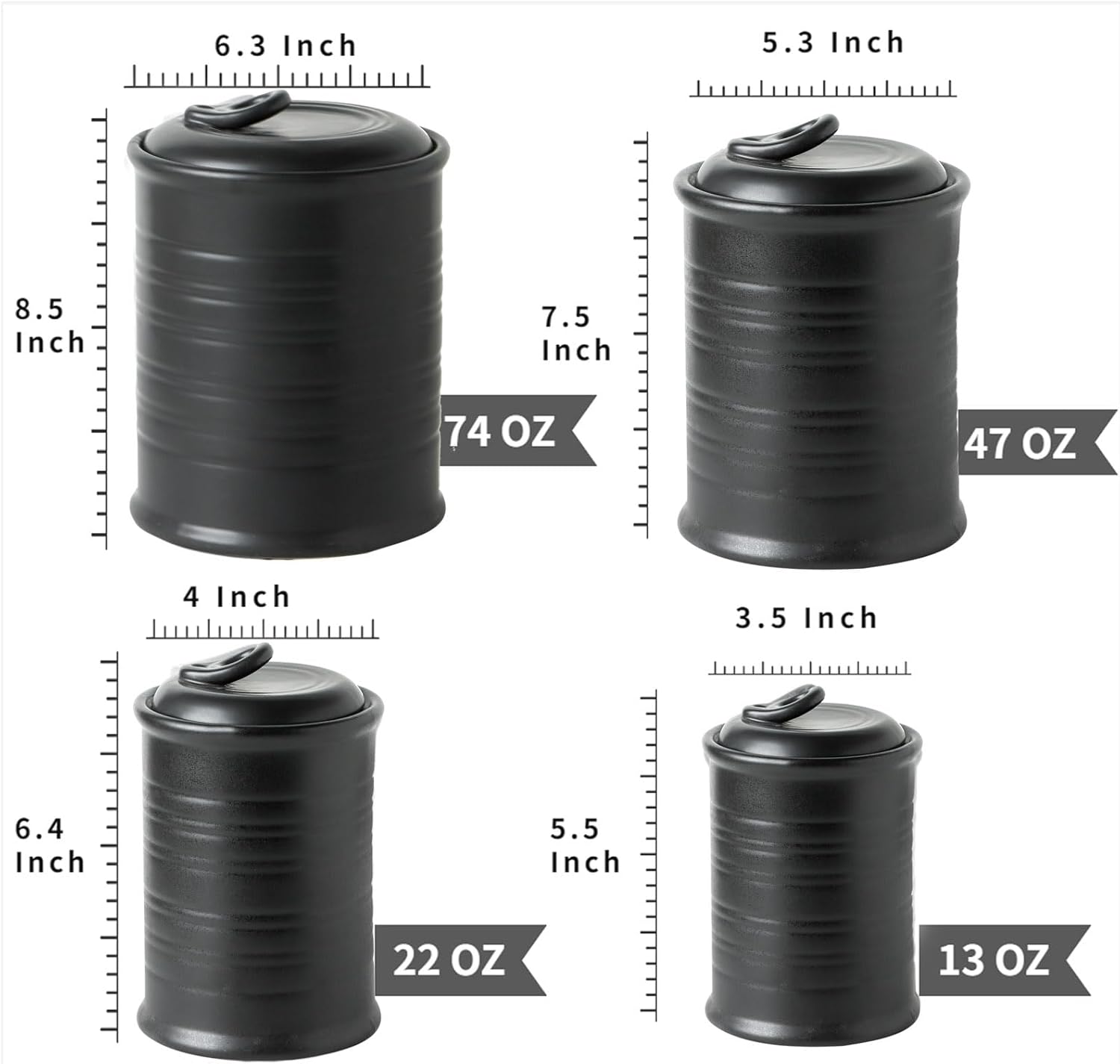 Nihow Food Storage Jar Sets: Ceramic Container with Air Tight Lid for Flour/Sugar/Rice/Coffee/Cookies/Candy - Seal Damp-proof Canister for The Kitchen Counter - Set of 4 (Matte Black)