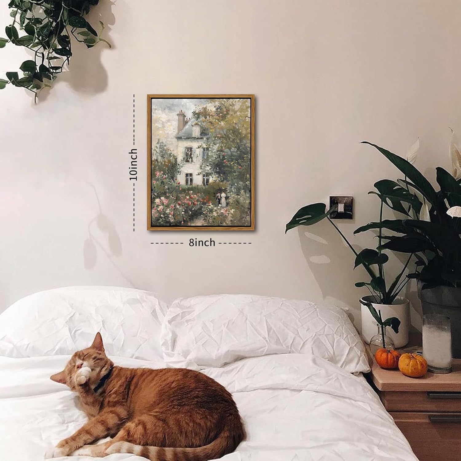 Floating Framed Canvas Vintage Wall Art, Neutral English Cottage Rose Garden Oil Paintings Print, Spring Pictures Wall Decor for Living Room Hallway Bedroom Office Rustic Decor 8x10 inch
