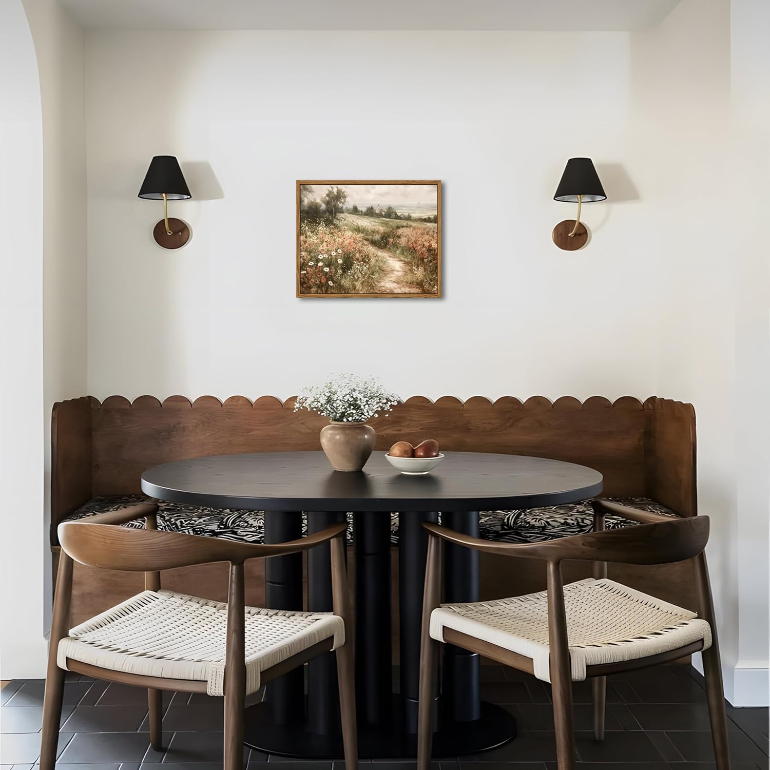 - Framed Canvas Wall Art: This vintage wildflower bush canvas painting captures a serene countryside scene, blending floral charm with cottagecore elegance. Ideal for enhancing your farmhouse living room, bedroom, or cozy reading nook.