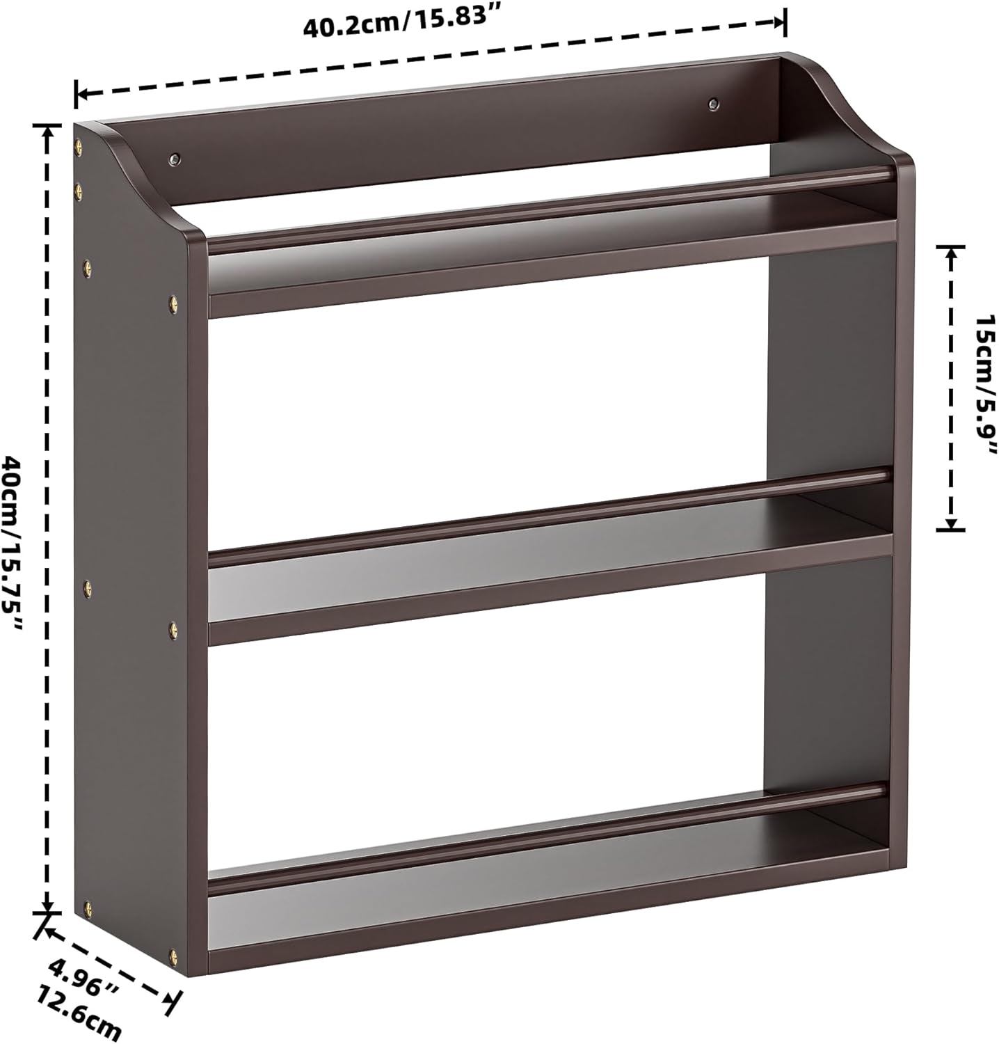 3 Tier Bamboo Wood Spice Rack, Seasoning Bottles Jars Organizer Shelf for Spices or Craft Supplies, Kitchen Counter or Wall Mounting (Brown)