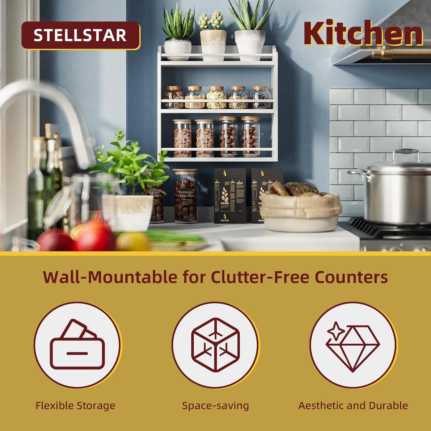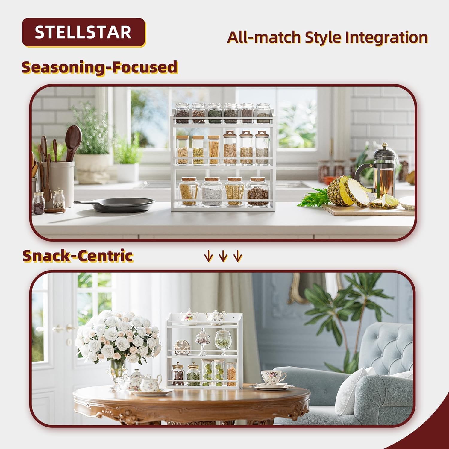 - SIMPLE, ELEGANT & VERSATILE: This rack is both a stunner and a workhorse. Its minimalist design oozes elegance, blending seamlessly with any decor to add warmth. But it’s more than a spice rack! Use it to organize your coffee bar, declutter your bathroom, or neatly stack snacks in mason jars. Wherever you place it—kitchen, pantry, bathroom—it transforms chaos into a tidy, stylish space