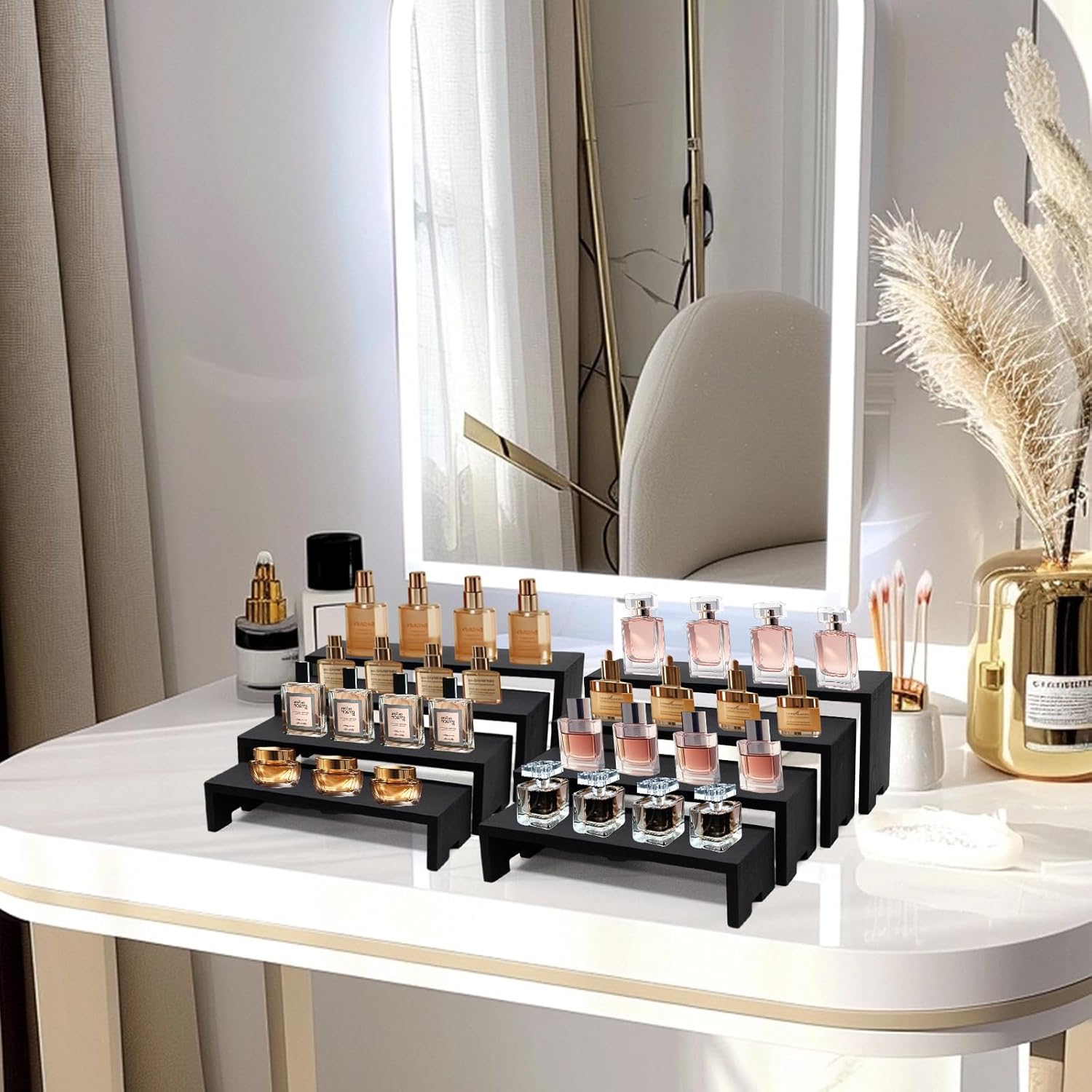 Large Display Wood Risers Wooden Stand 8 Tier Wood Racks Decorative Rectangular, 2 Set 8 Piece Cupcake Stands Cologne Perfume Organizer Dessert Showcase Items(black)