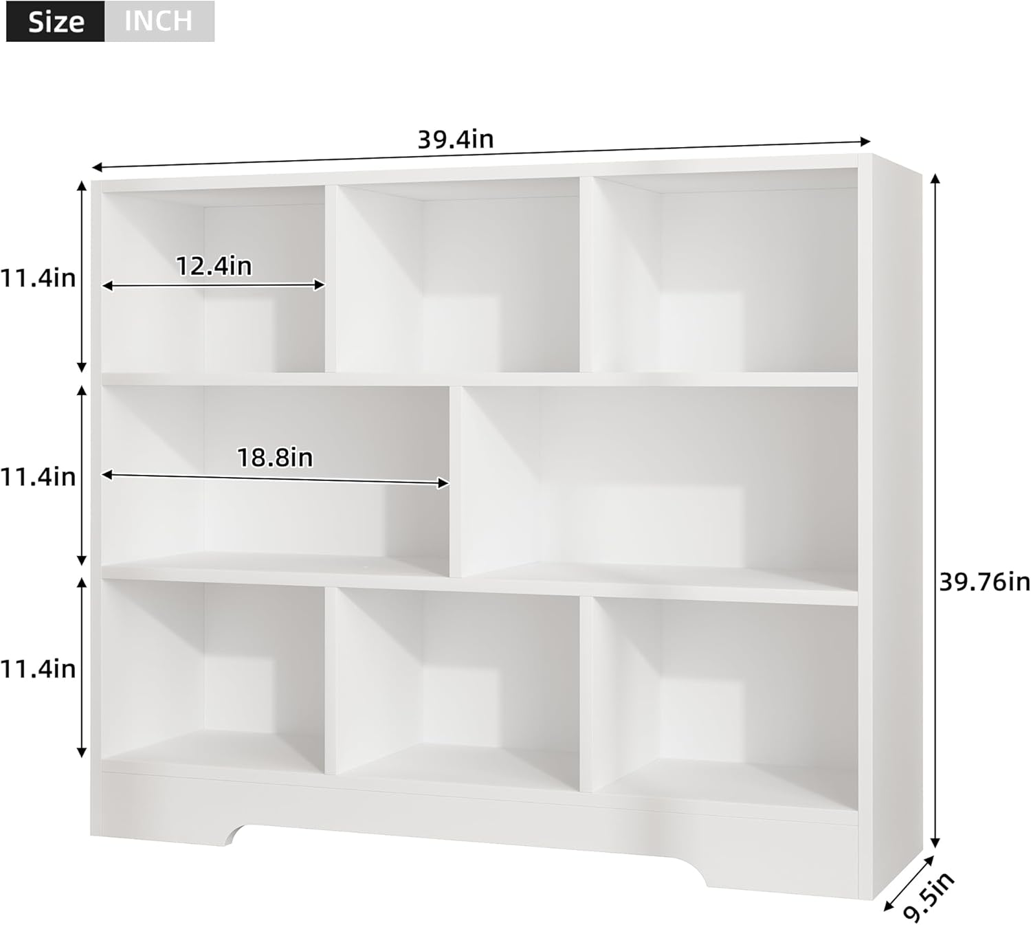 - 【Durable Bookshelf】Overall dimensions: 39.4”L x 9.4”W x 39.8”H. This Cube Storage Organizer is crafted from MDF board, which is durable and sturdy. The thick bottom base is designed to strengthen the stability.