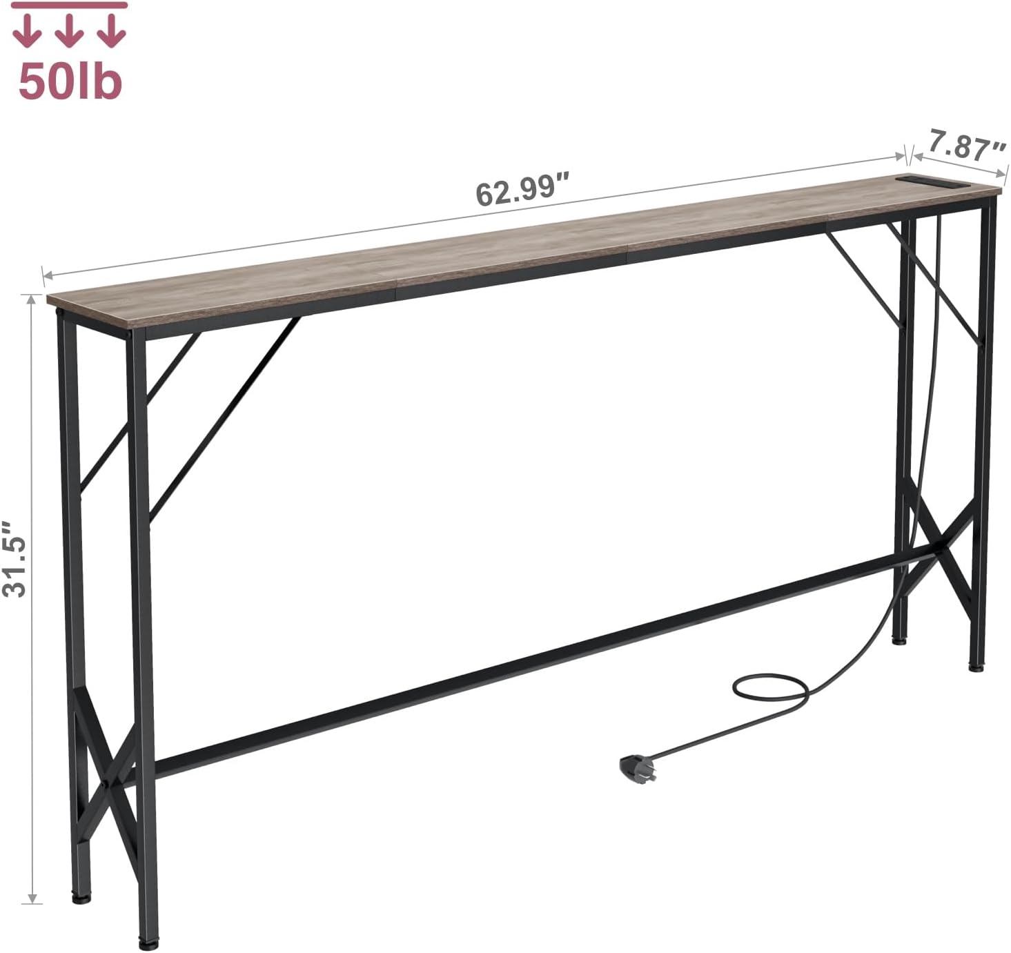 - 【CONSOLE TABLE WITH FAST-CHARGING STATION】---This size 7.9"D x 63"W x 31.5"H sofa table is equipped with 2 AC, 1 USB + 1 TYPE-C(5V 3A ) fast-charging ports, the power cord is 5 feet long, convenient to charge your mobile phone, computer, ipad.