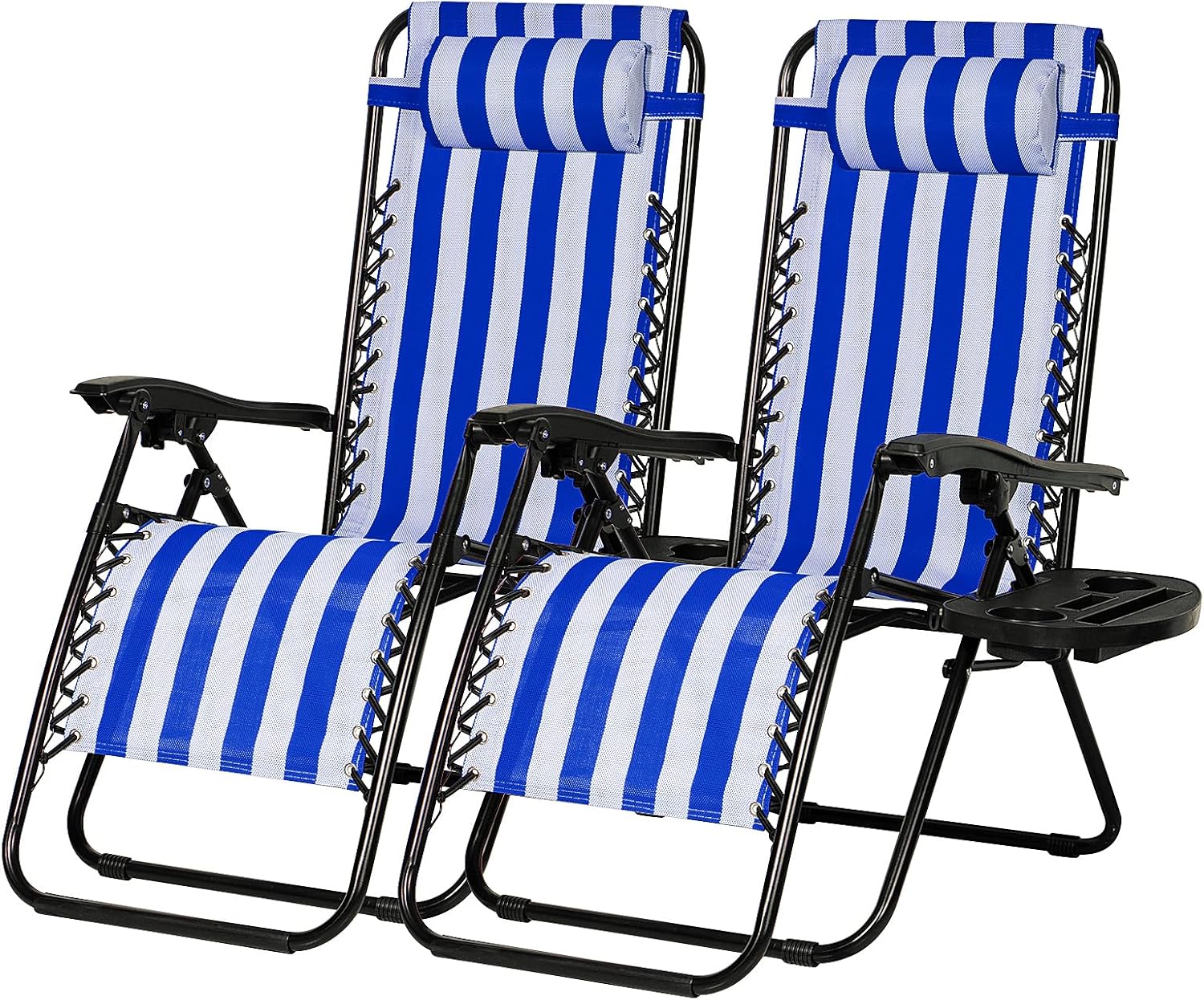 Nazhura Set of 2 Relaxing Recliners Patio Chairs Adjustable Steel Mesh Zero Gravity Lounge Chair Beach Chairs with Pillow and Cup Holder (Navy Blue Stripe)