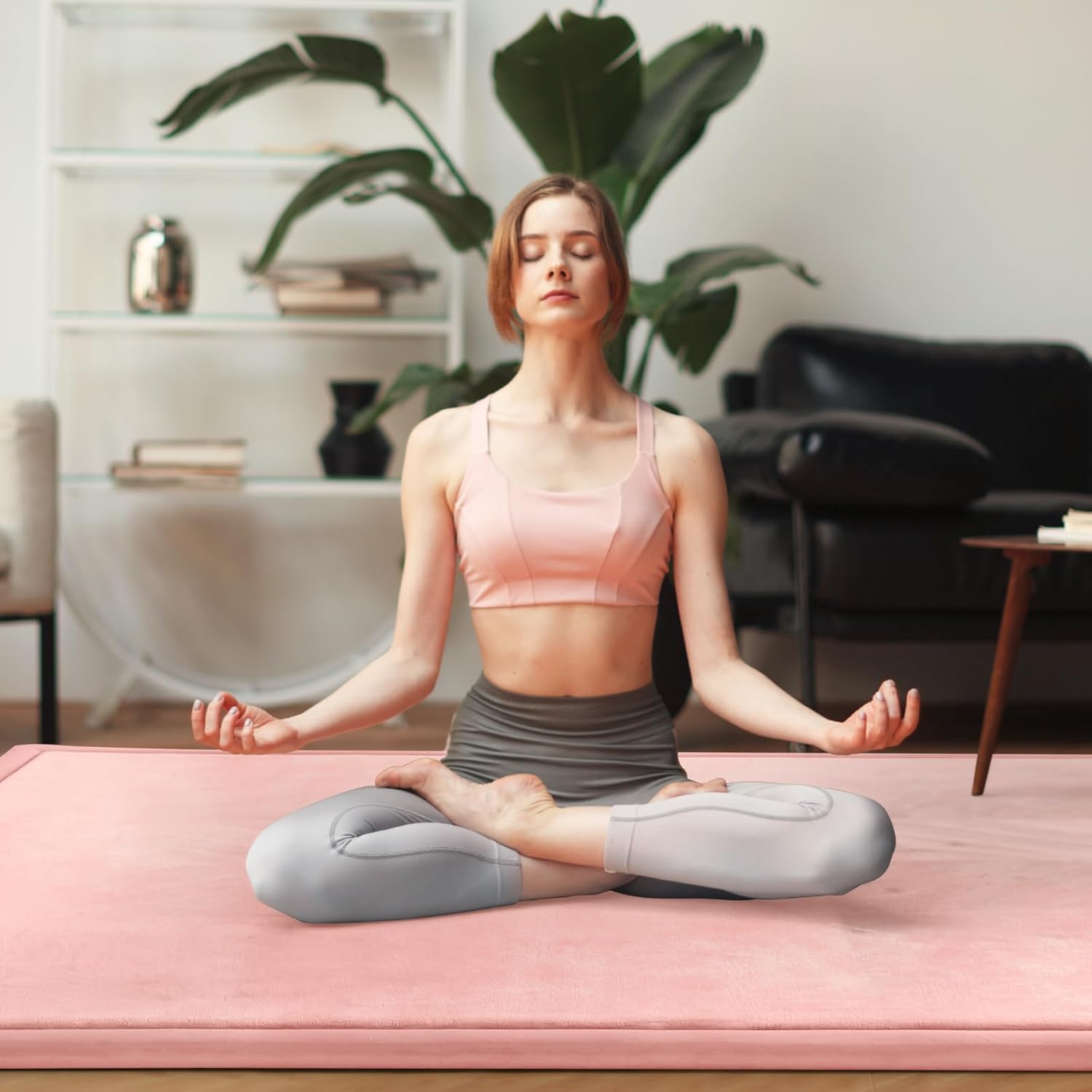 Baby Play Mat for Floor Tummy Time Nursery Rug Muscle Area Rug Playroom Tatami 50 * 50" Memory Foam 1.3" Thick Crawling Mat For Babies,Toddlers, Infants, Kids(Pink)