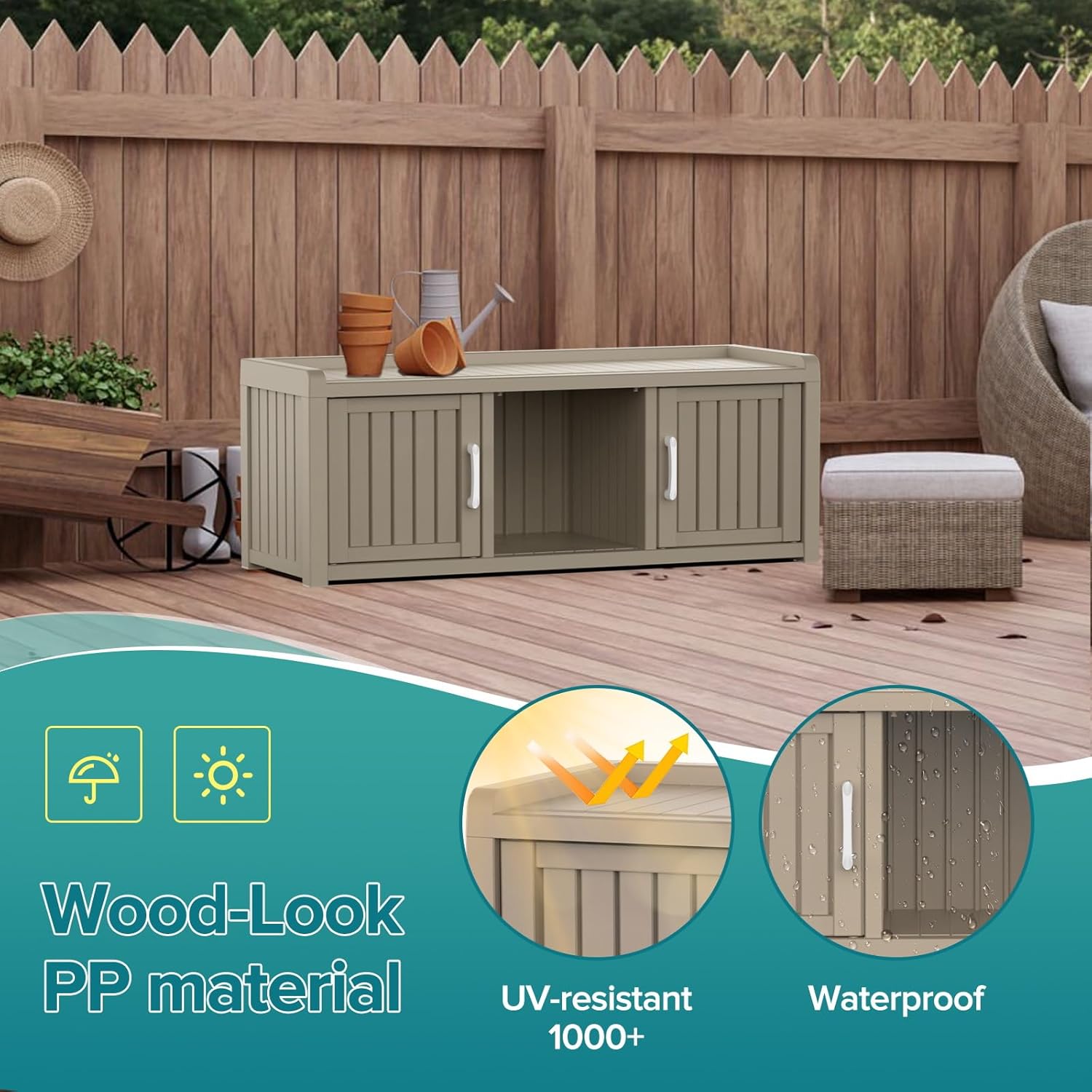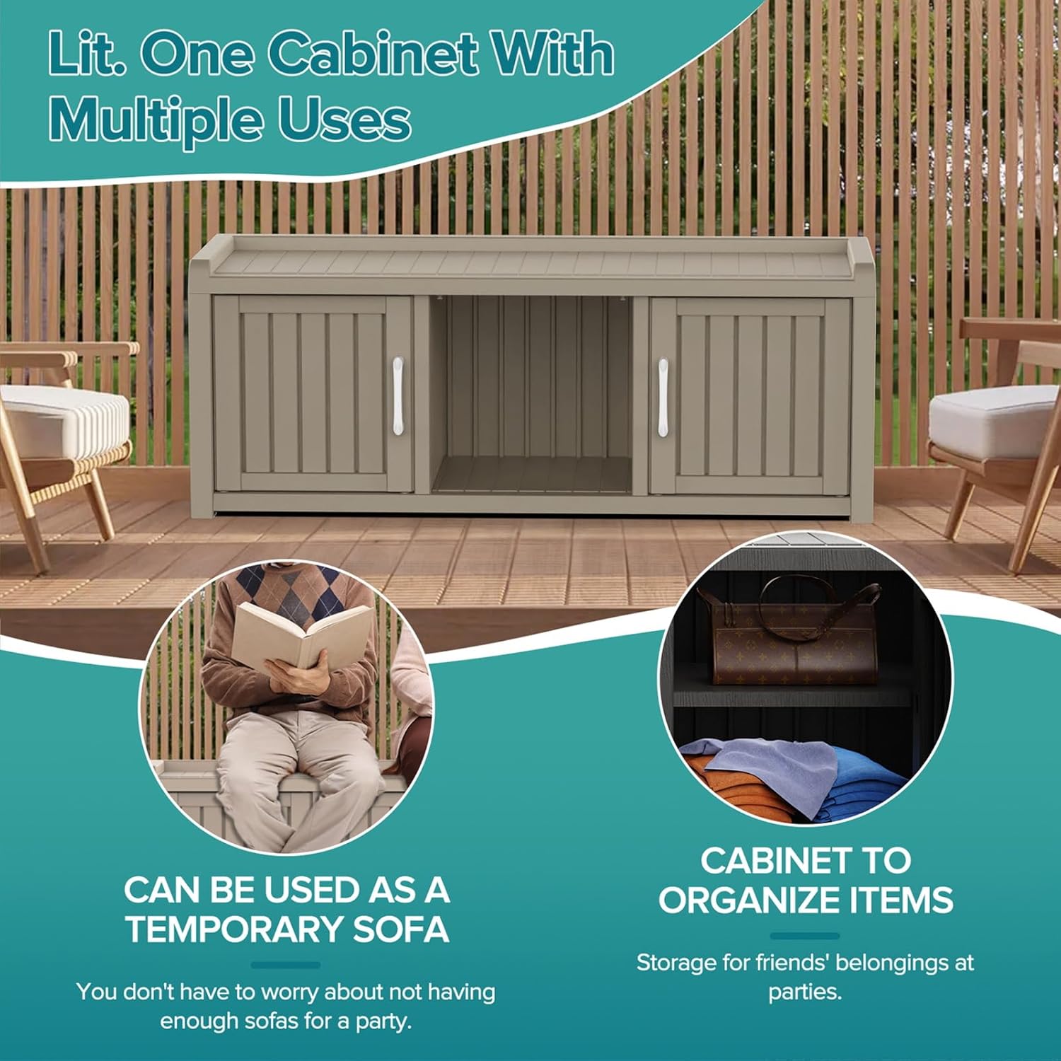 ROJIK Shoe Cabinet Waterproof UV-Resistant,Storage Bench Indoor Outdoor with Adjustable Shelves,for Entryway Bedroom,Hallway,Living Room(2 Door,Grey)
