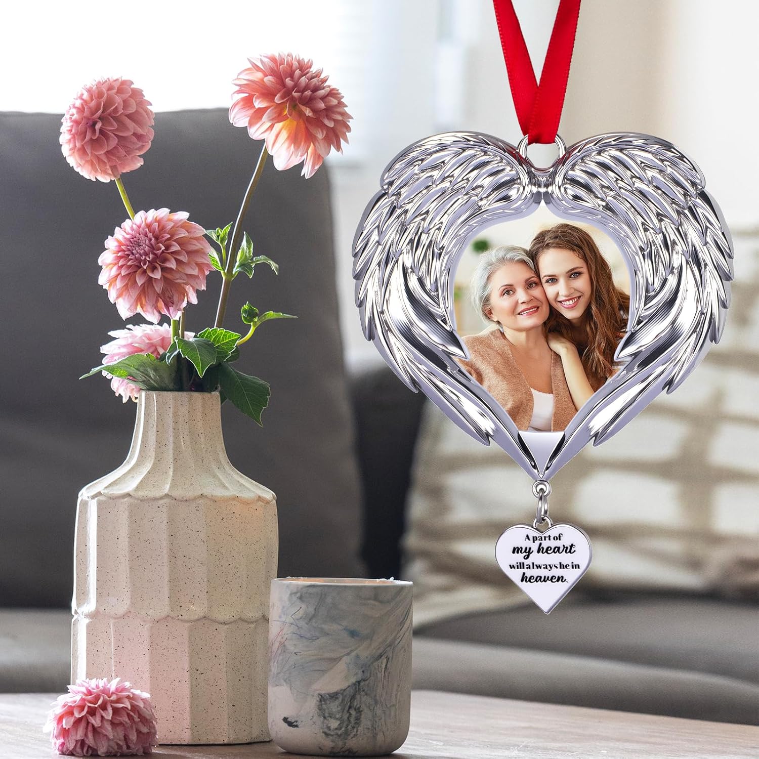 - ANGEL WINGS MEMORIAL PHOTO ORNAMENT - Whether youβre dealing with the struggle of losing a loved one or you simply want to provide comfort and support to your mother, grandmother or friend for their important loss, this memorial picture frame is a thoughtful and unique touch for your Christmas tree.
