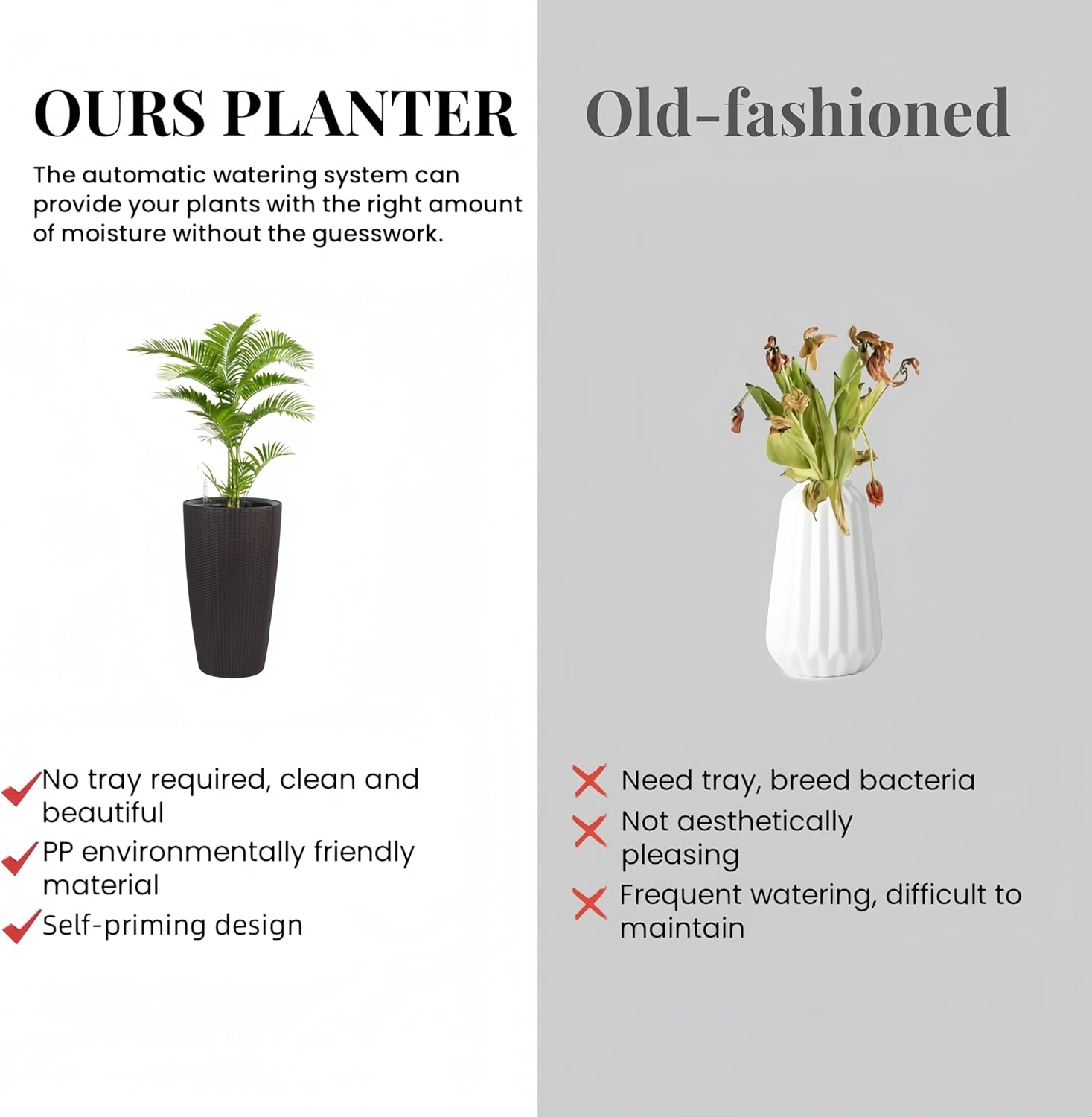 - 【Save Time and Effort】The automatic watering system will supply moisture to your plants, making gardening easy and stress-free.Allow self-watering tall planters to free up your time and effort in tending to your plants and enjoy a flourishing garden!