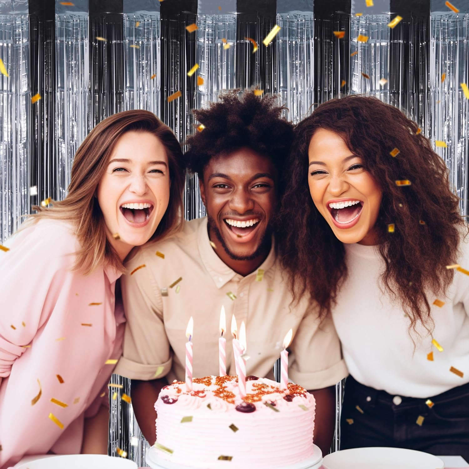 - 【3 Sets of Foil Fringe Curtains】Each package includes 3 sets of 3.3x8.2 ft foil fringe curtains, providing enough length to decorate your party with ease. Perfect for creating a stunning backdrop for any occasion.