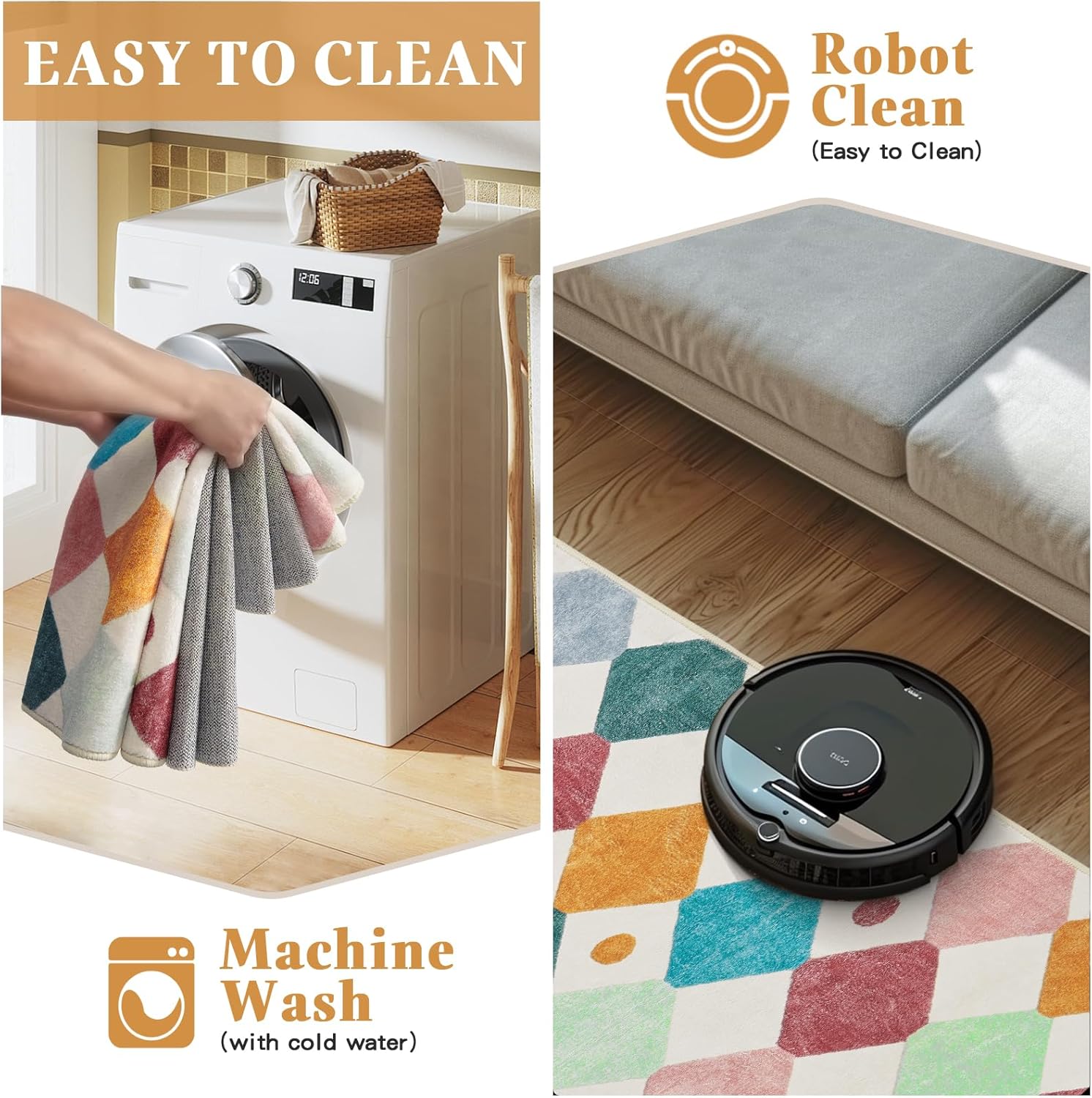 - Machine Washable: Designed with convenience in mind, our bedroom rug is machine washable, allowing for easy cleaning and maintenance. Also suitable for daily cleaning with a vacuum cleaner, broom, or mop. Easy to keep a new looking