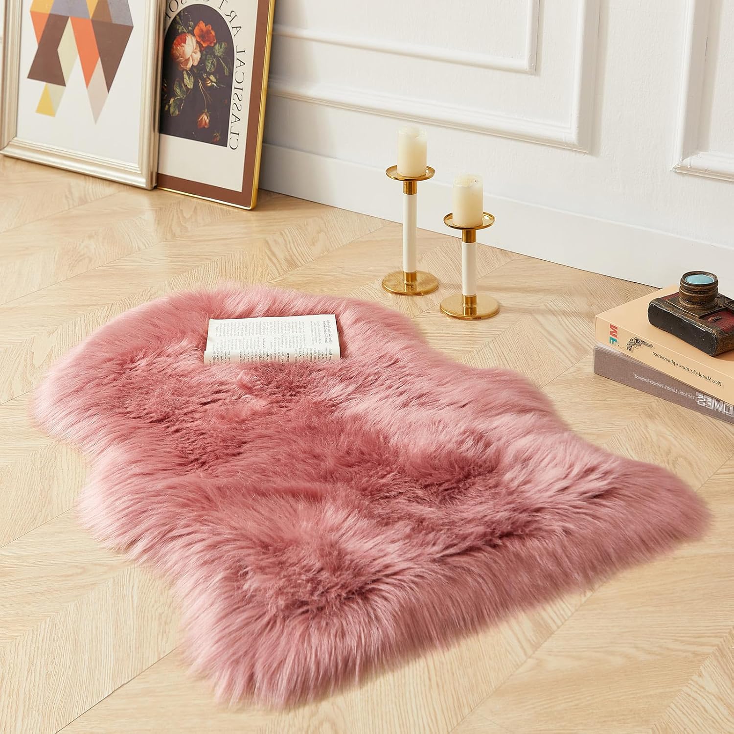 AMTOVO Faux Fur Rug, Blush Pink Small Area Rug, Fluffy Sheepskin Rug, Fuzzy Ultra Soft 2 x 3 ft Shag Rugs for Bedroom Sofa Throw Cushion Room Decor, Sheepskin