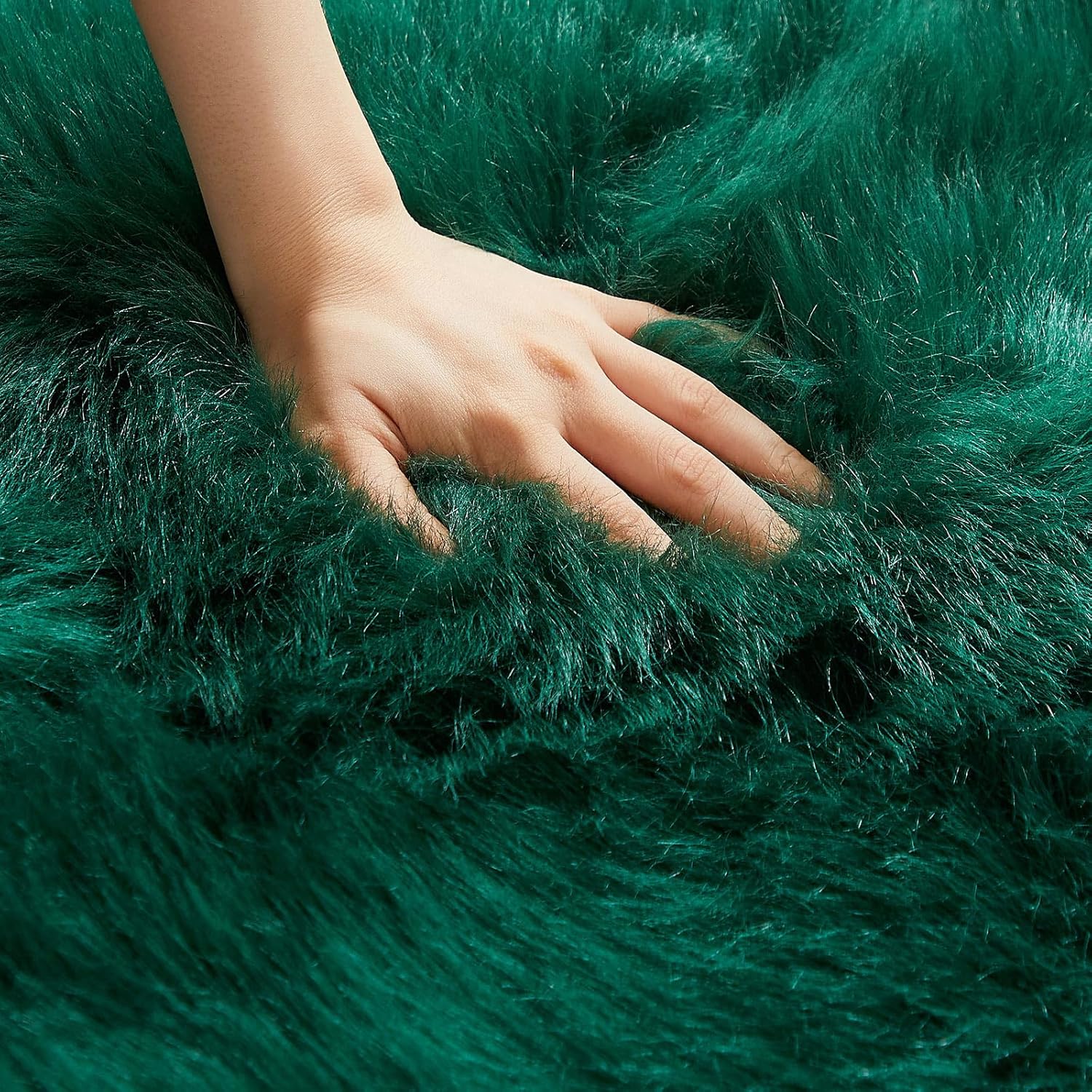 AMTOVO Faux Fur Rug, Dark Green Area Rug, Fluffy Sheepskin Rug, Fuzzy Ultra Soft 2 x 4 ft Shag Rugs for Bedroom Sofa Throw Cushion Room Decor, Sheepskin