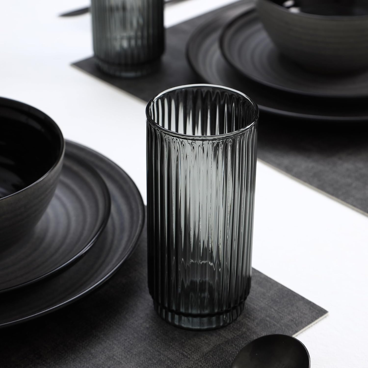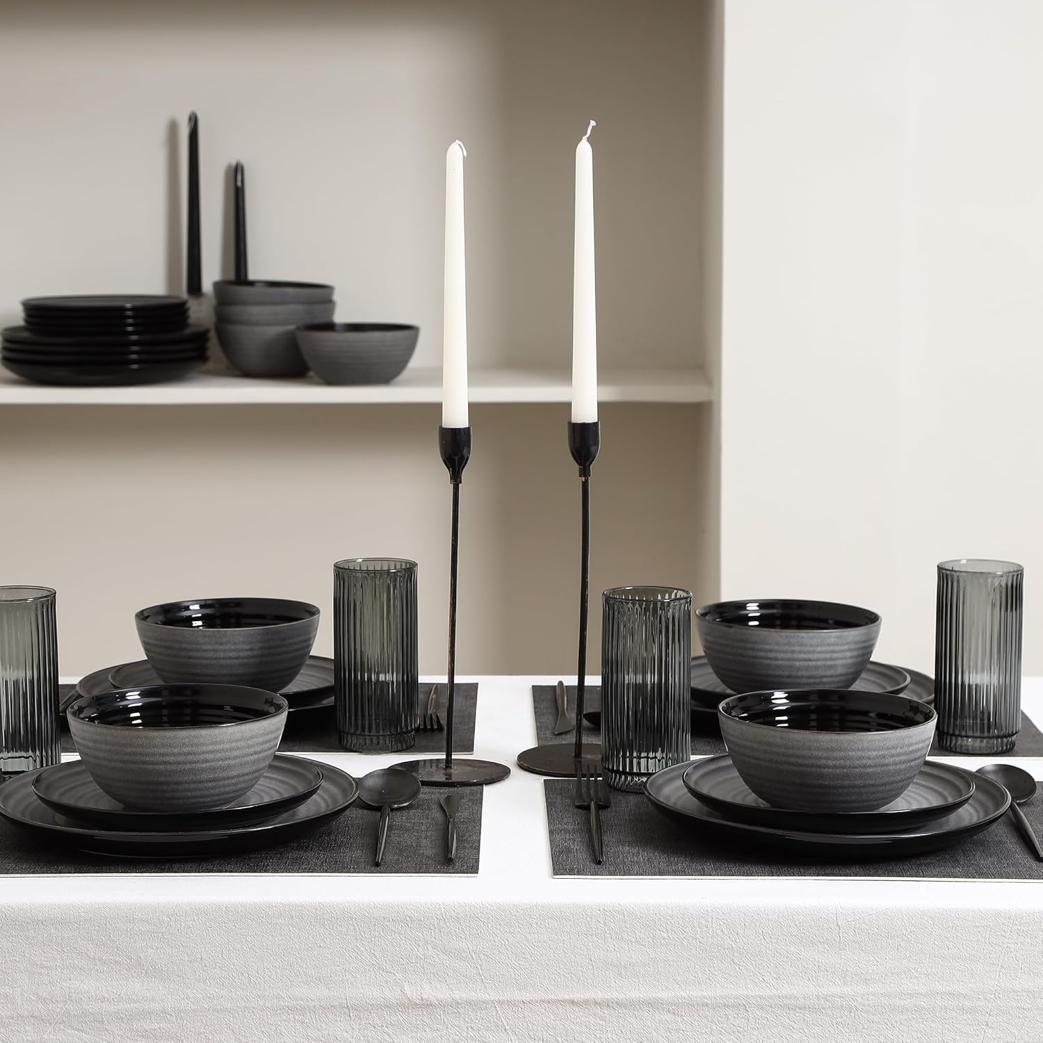 Stone Lain Dua 16-Piece Dinnerware Set Stoneware, Borosilicate Glass, Black