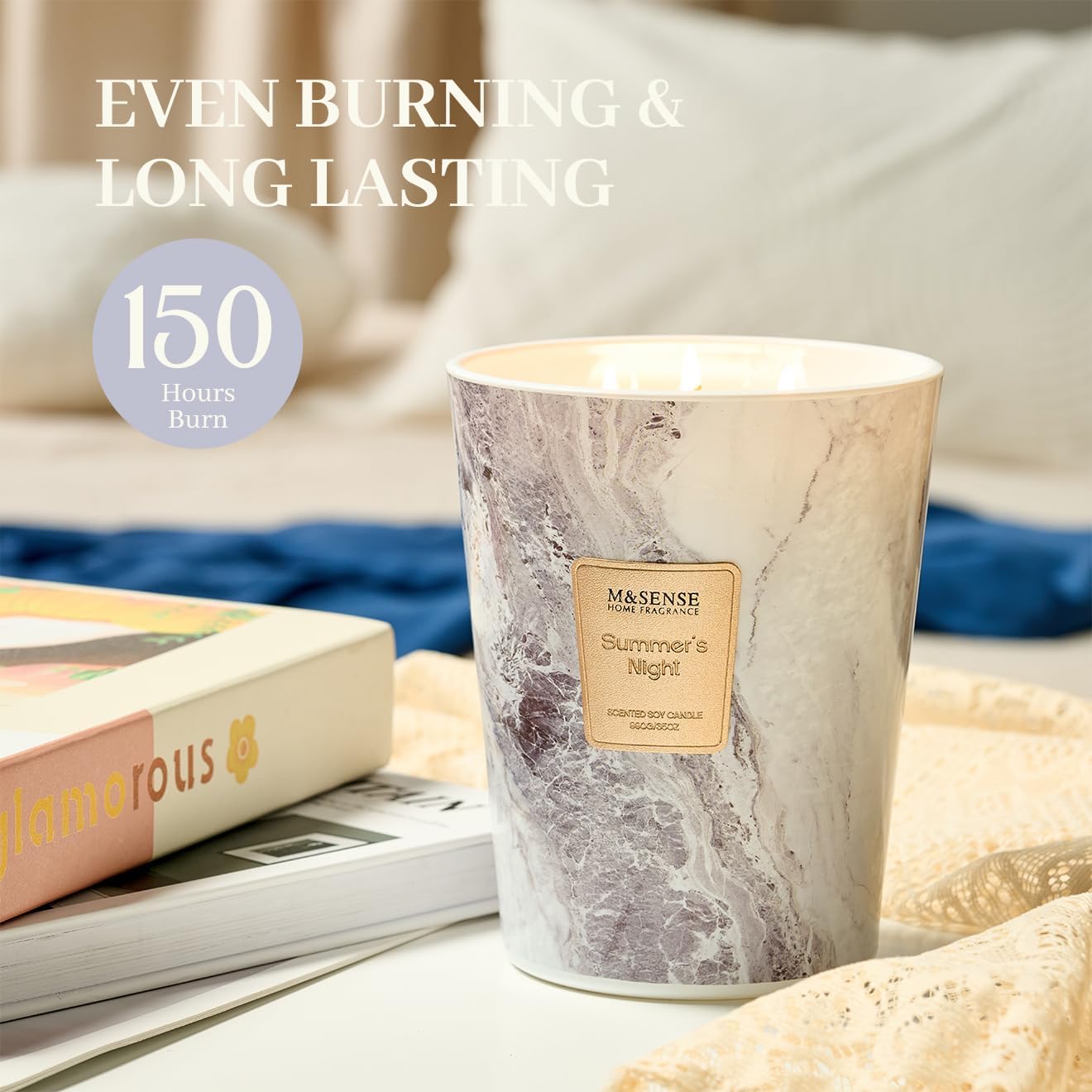 M&SENSE Summer Night Scented Candles for Home, 3-Wick Highly Scented Jar Candles, Extra Large Candle 35 Oz 150 Hours Long Lasting Burning, Relaxing Aromatherapy Candle for Stress Relief, Meditation