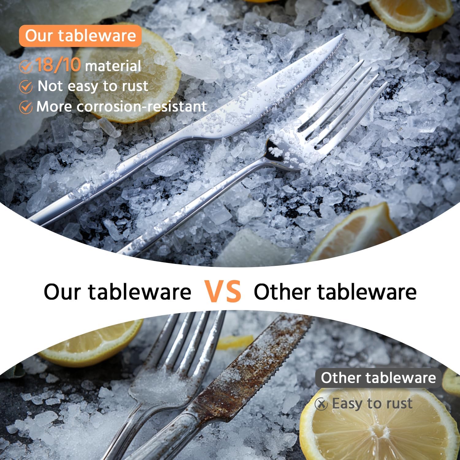 - 18/10 STAINLESS STEEL: The cutlery set is made of 18/10 food-grade stainless steel which is very durable and rust-proof. Meanwhile, the material is sturdy ensuring that silverware will not bend