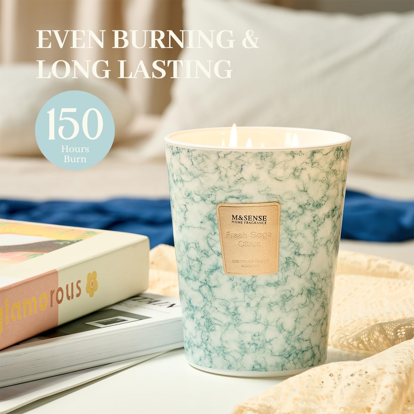 M&SENSE FreshSage Citrus Scented Candles for Home, 3-Wick Highly Scented Jar Candles, Extra Large Candle 35 Oz 150 Hours Long Lasting Burning, Relaxing Aromatherapy Candle for Stress Relief,Meditation