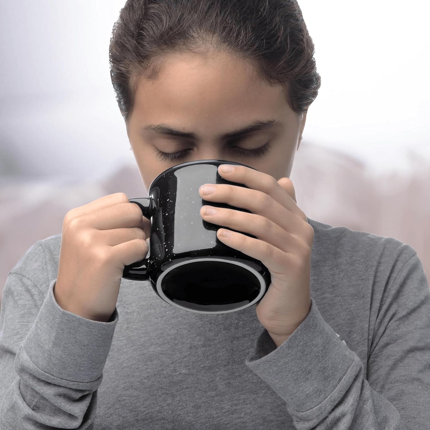 - DURABLE & COMFORTABLE DESIGN - 13-ounce Ceramic Campfire Coffee Mugs made of ceramic in the style of tin cups. Each ceramic coffee mug fits in your hand perfectly so you can enjoy your favorite hot or cold beverage. Plus, the slightly flared top makes for easy drinking and fewer spills.