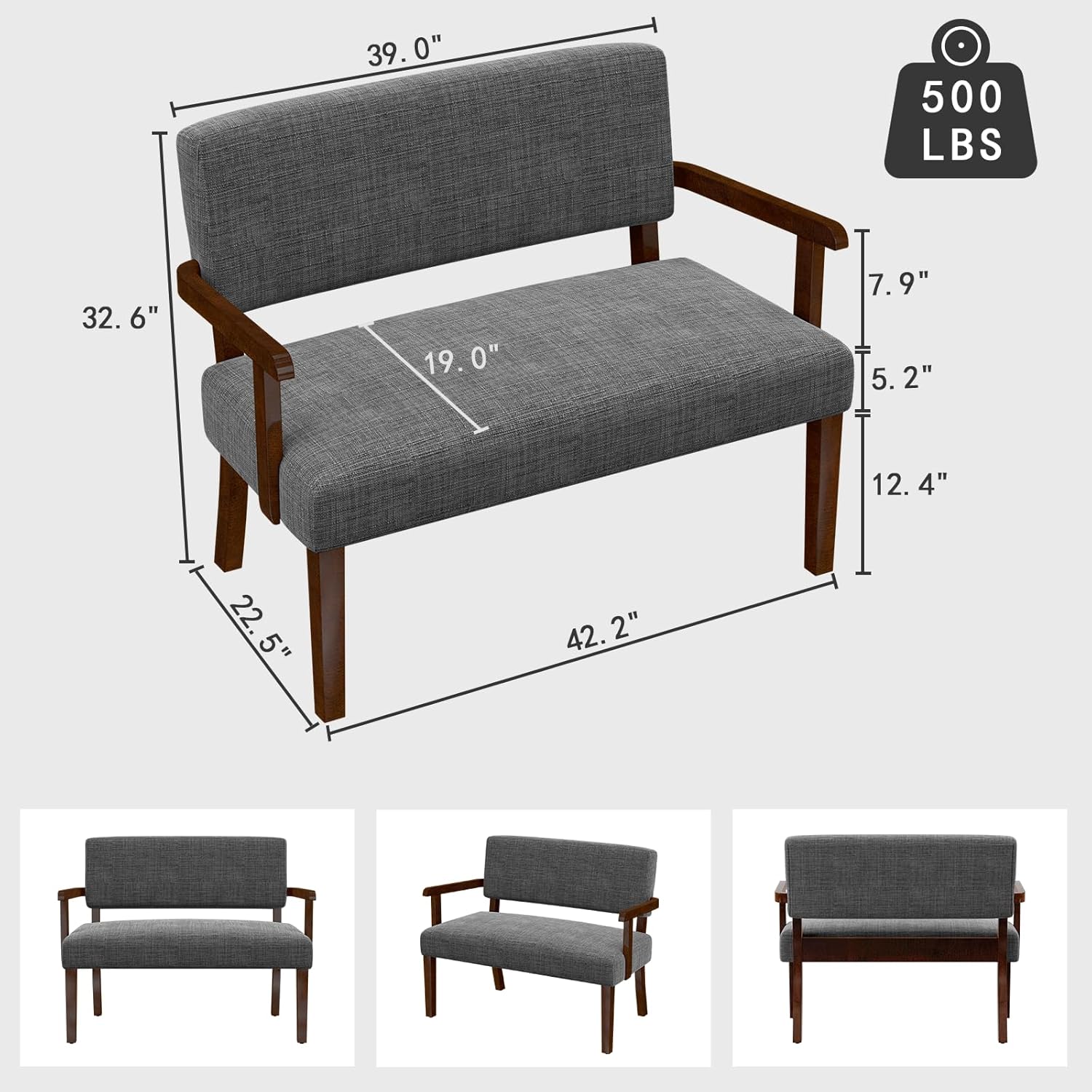 Accent Chair 2 Seat, Arm Chairs with Soft Seat and Armrests for Living Room, Love seat for Dining, Reading, and Waiting Rooms (Gray)