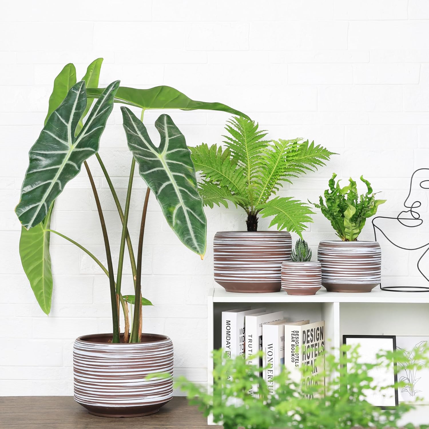 - 【Ribbed Ceramic Surface with Matte Texture】:This large ceramic flower pot features a raised striped design with a brushed matte finish. A modern alternative to traditional smooth pots, blending visual depth with functional grip.