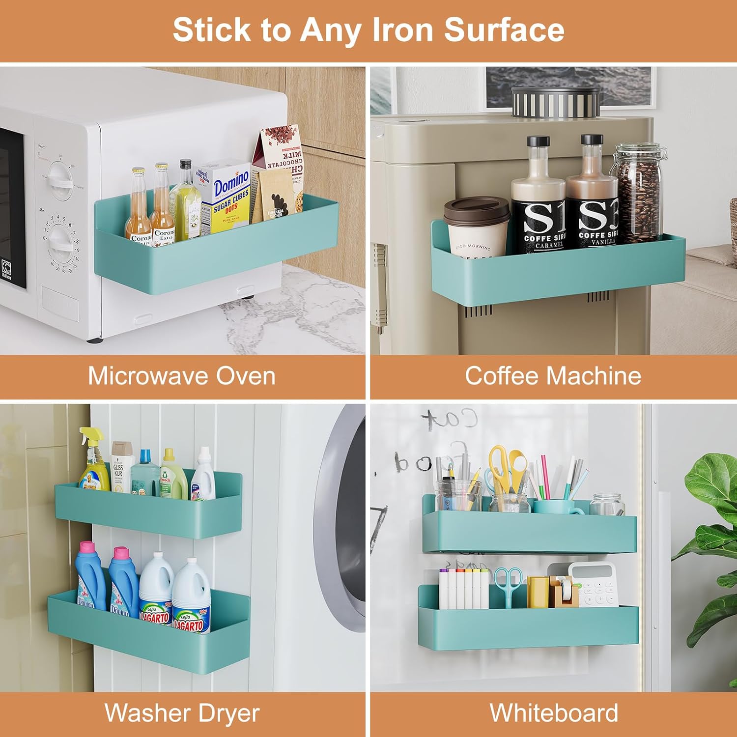 Magnetic Spice Rack for Refrigerator, Kitchen Organizer and Storage Shelf, Blue(2 Pack)