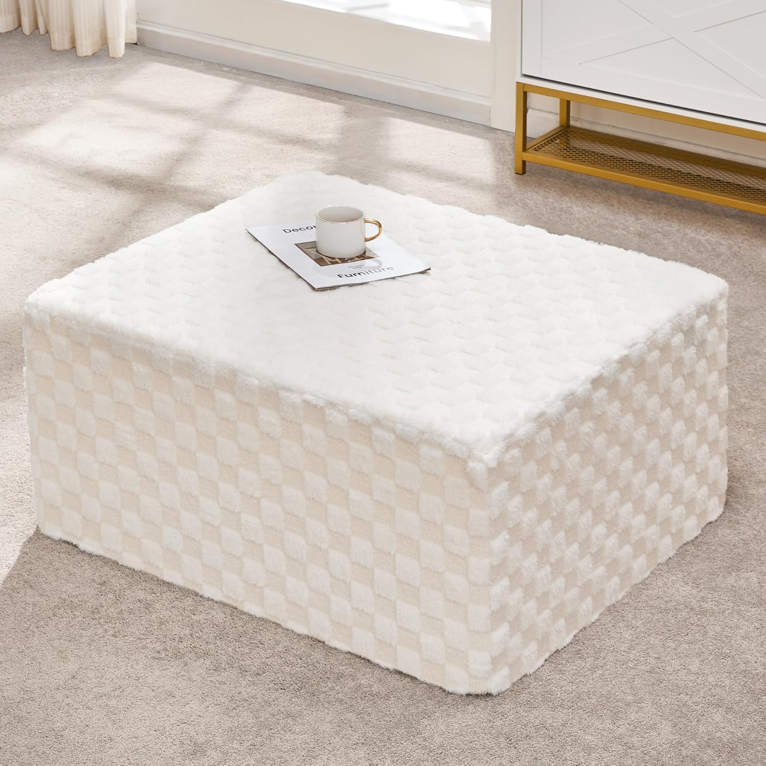 Hobestluk Rectangle Ottoman Memory Foam Footrest for Couch with Removable Cover Large Floor Seating for Adults Ottoman Coffee Table for Living Room, Bedroom or Office (Plush White, Footrest)