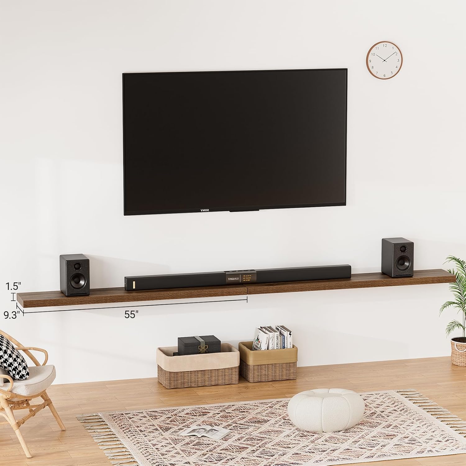 - γLonger DesignγOur pretty wall shelves are 55"W x 9.3"D x 1.5"H.Our walnut floating shelves is longer than traditional designs and can hold more items.The floating shelf optimize wall space,helping organize essentials without taking up floor space in your home.
