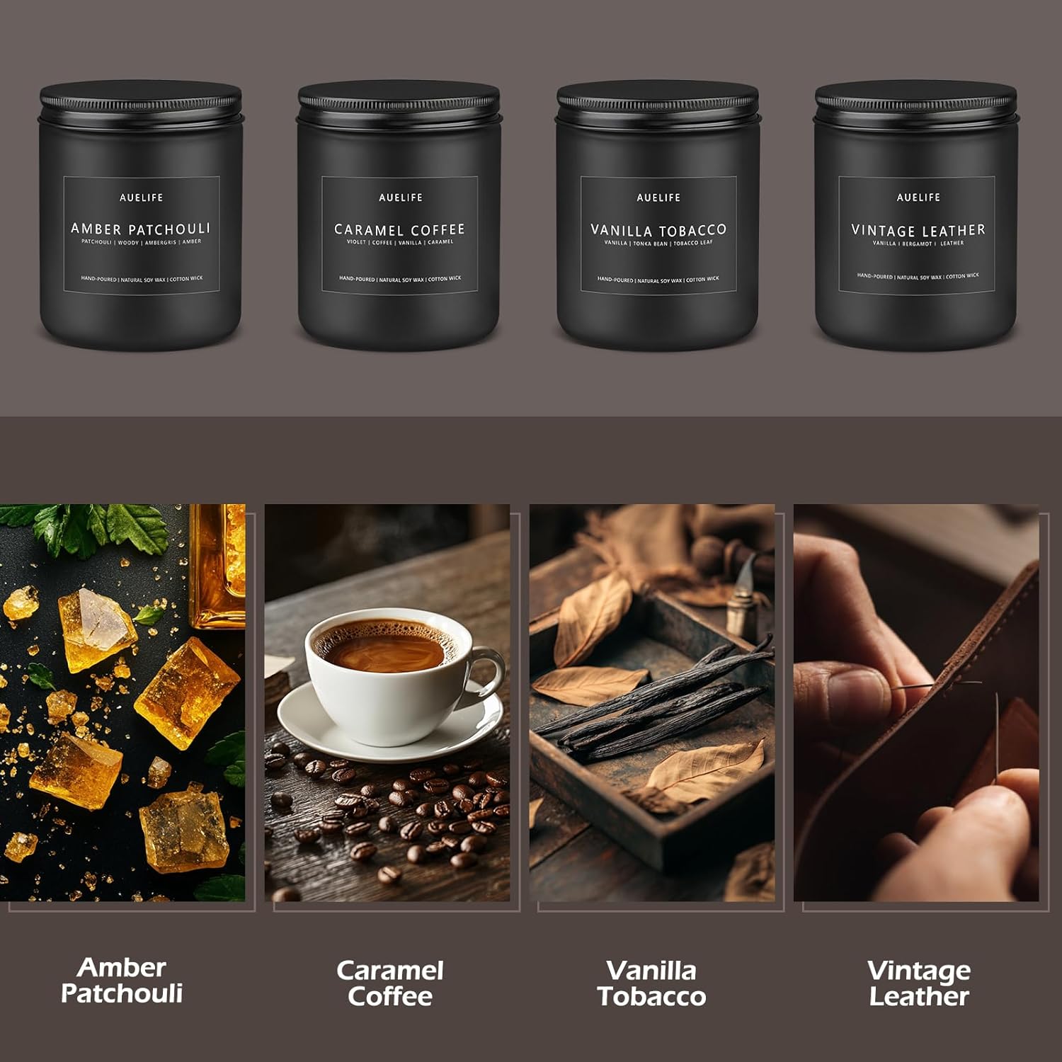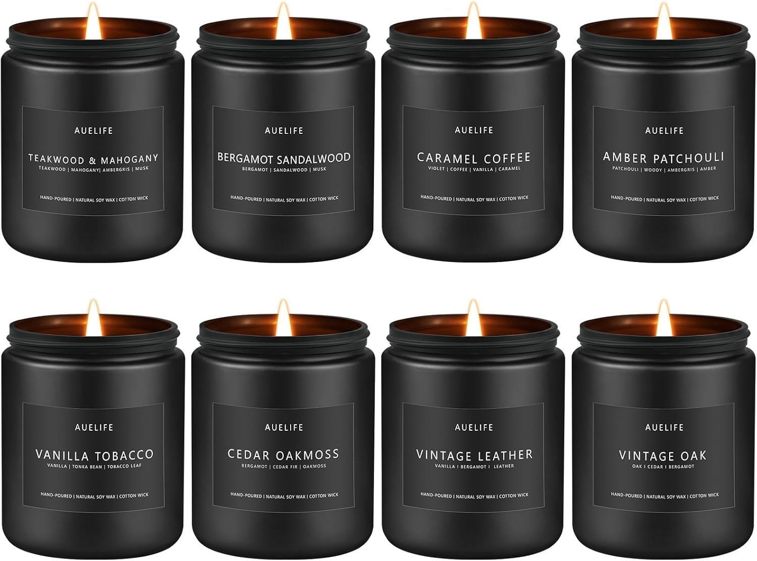 - 【Home Candle Set】Auelife scented candle is crafted with premium soy wax, each candle is meticulously poured, ensuring a clean, even burn and long-lasting scent throw. Ideal for bedrooms, offices, or man caves.
