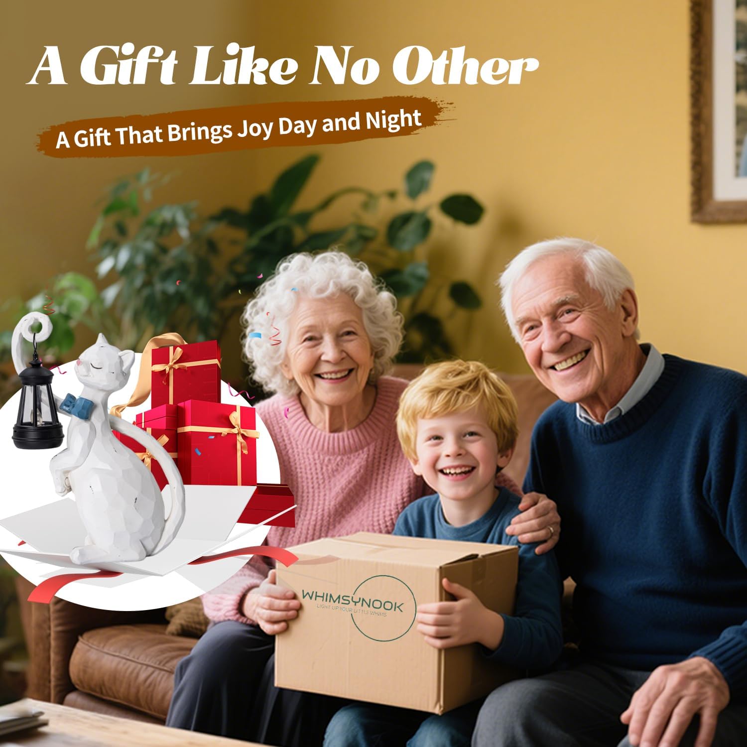WHIMSYNOOK 10.7" White Cat Solar Garden Light Statue – Outdoor Garden & Yard Decor, LED Lantern, Gift for Cat Lovers