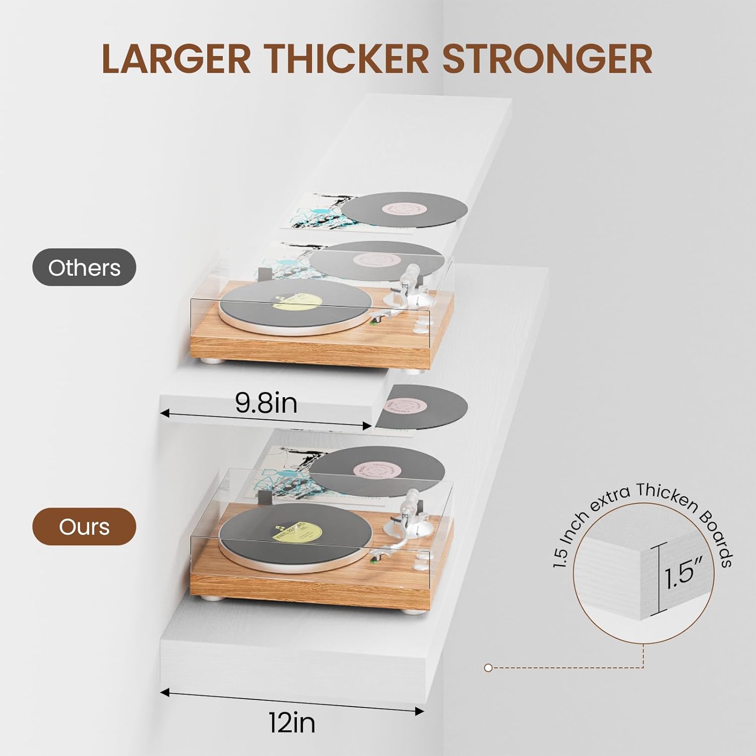 - Extra Deep Floating Shelves: Measuring 11.6” D x 55.1” W x 1.5” H, these shelves are crafted for maximum depth and durability. The spacious 12” depth gives you plenty of room for stylish display, organized storage, and decorative accents. Perfectly suited for your bathroom, kitchen, or living room, they enhance both function and flair in any space!