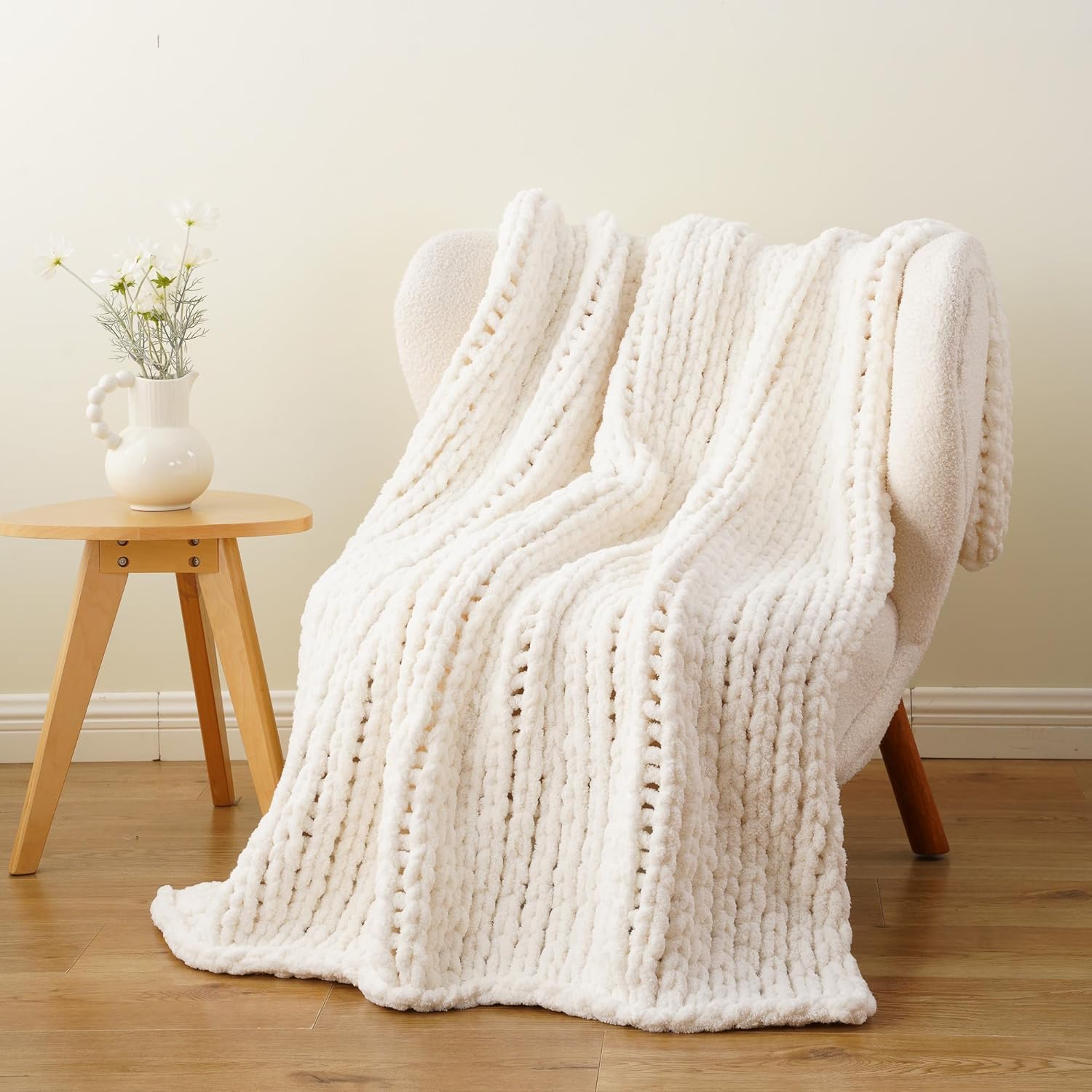 - 【Non-shedding & No pilling】Unlike other blankets, this chunky knitted blanket is designed with high quality chenille fabric that prevents shedding. You can enjoy its embrace without having to worry about shedding hair or lint!
