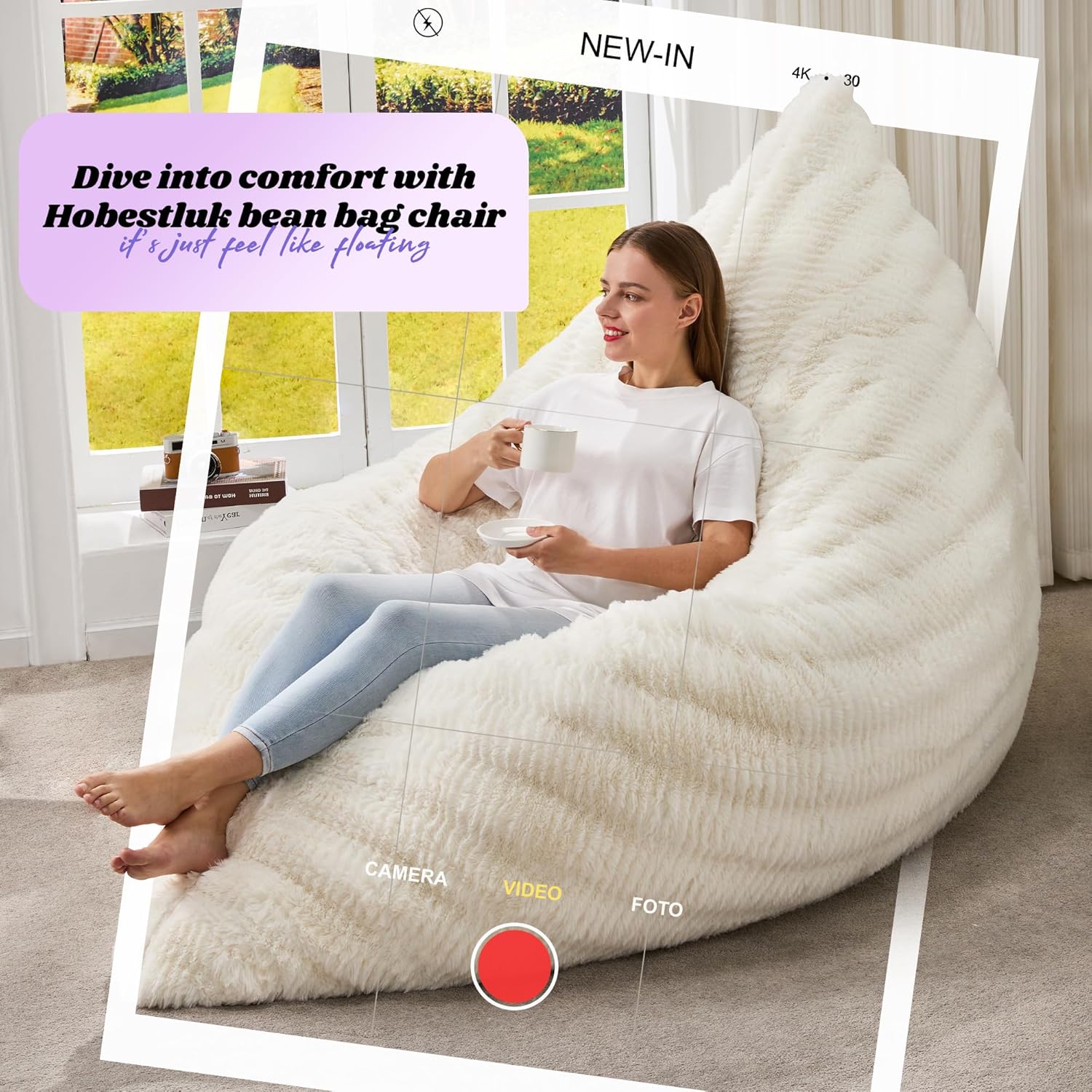 Hobestluk 3 in 1 Bean Bag Chair Giant Bean Bag Chairs for Adults with Ripple Cover Convertible Bean Bag Floor Cushion with Machine Washable Cover for Living Room (Ripple White)