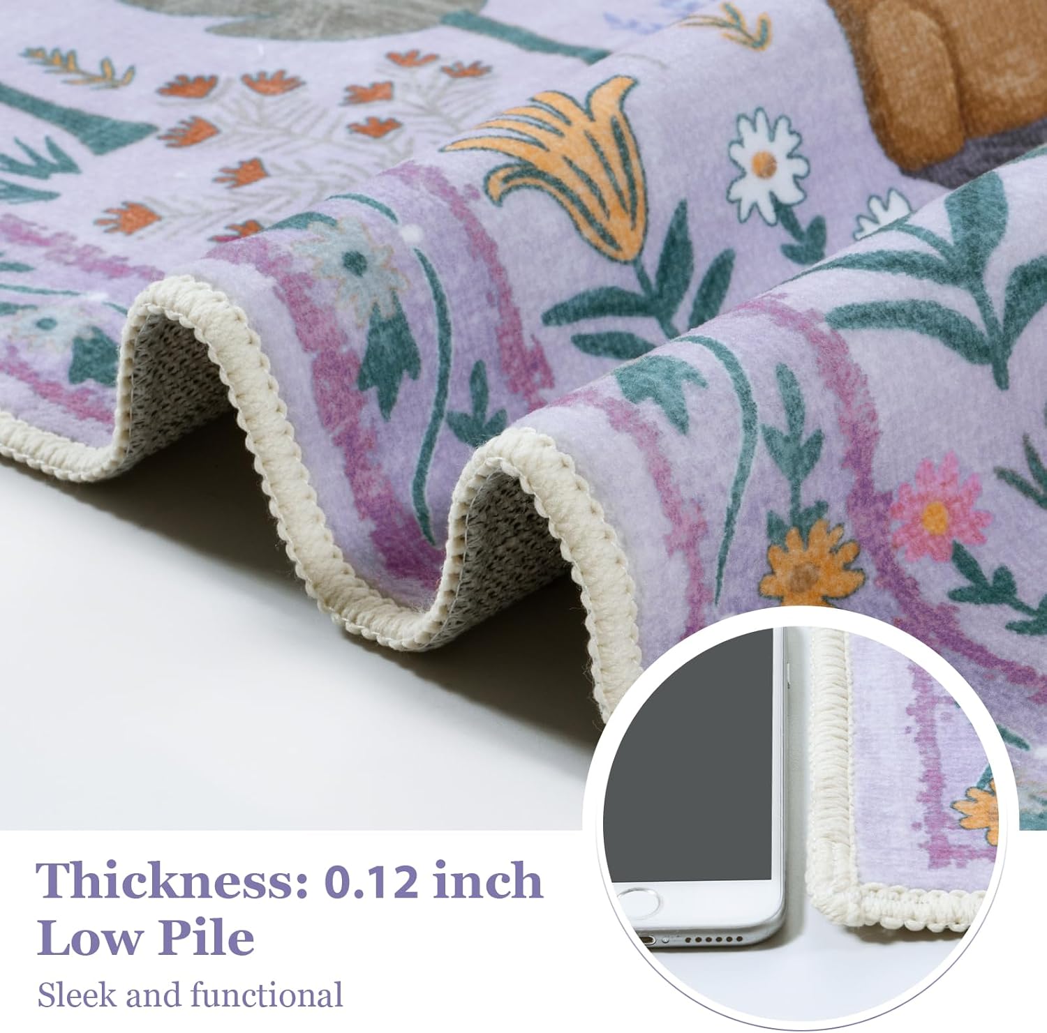 - Non-Slip & Ultra-Thin: The non-skid TPE backing can keep the rugs in place effectively, perfect for households with children, pets, or messy hobbies. This nursery rug is ultra-thin, allowing it to be easily placed under furniture