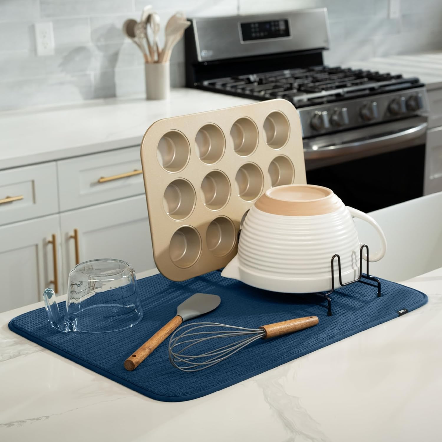 - Dish drying mats for kitchen counter are reusable, machine washable, and easy to store for kitchen organization; durable construction will not chip or break like a stone dish drying mat for kitchen