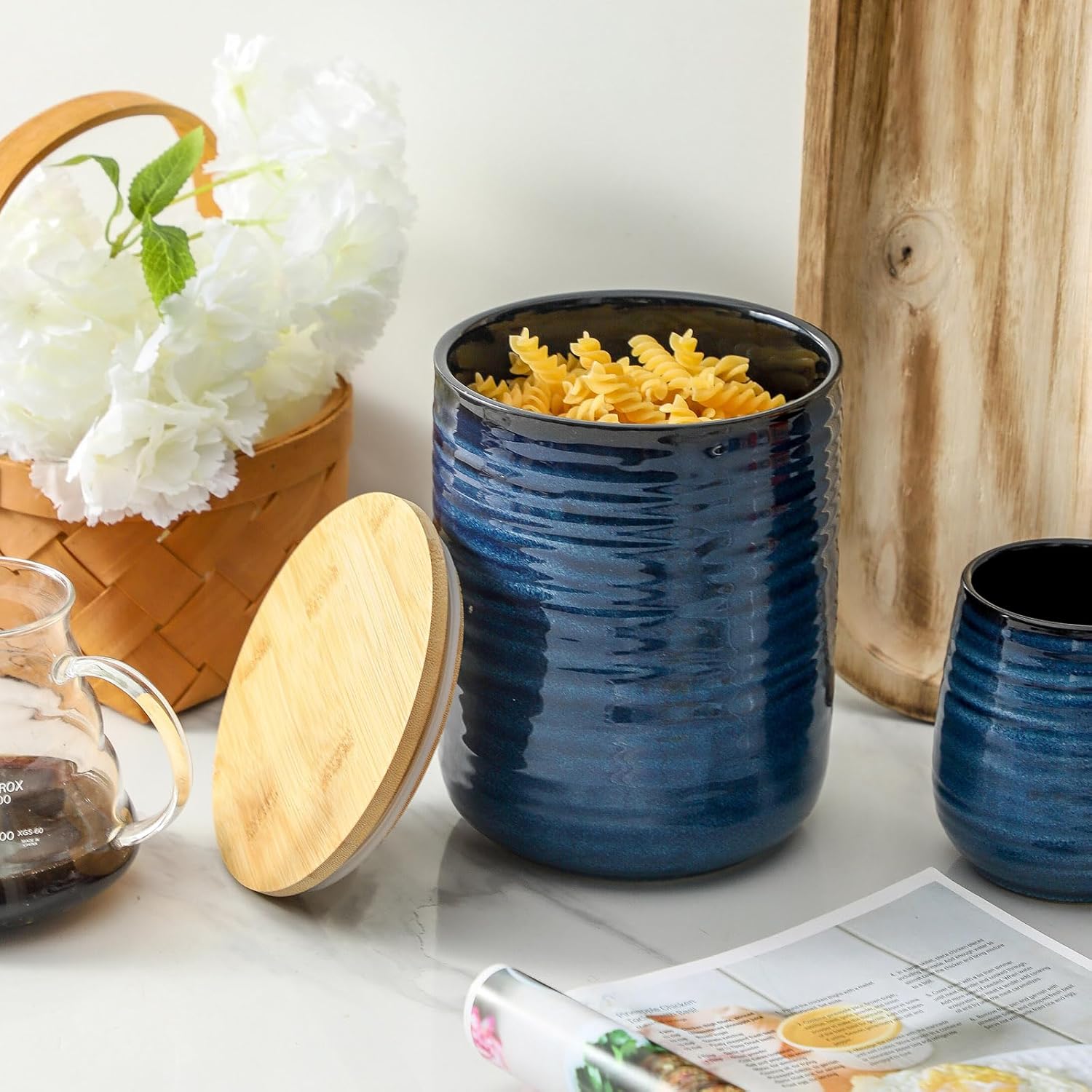 - Rustic And Farmhouse Decor: Hasense coffee canister designs with blue and white horizontal stripe which can catch your guest eyes and add a splash color to your home kitchen. This container have a larger volume, save space, and look good on countertop, shelves, or storage