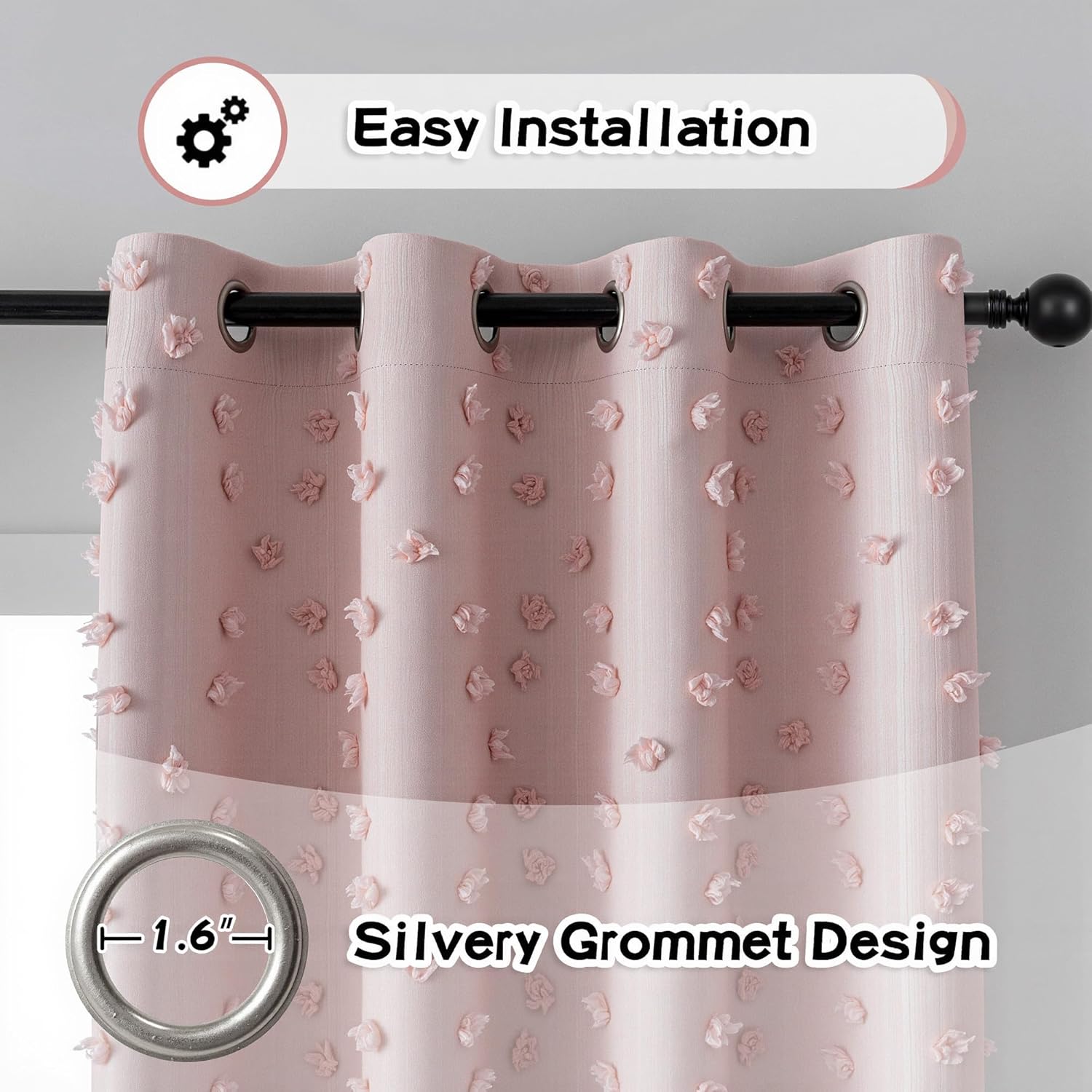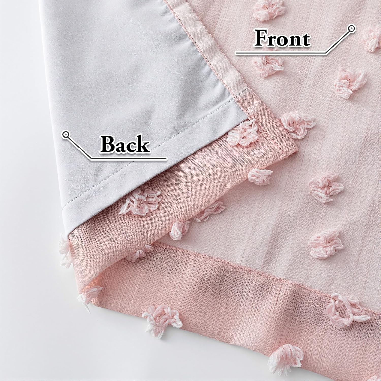 MYSKY HOME Blush Pink Pom Pom Blackout Curtains for Girls Bedroom 63 Inch Long 100% Room Darkening Curtain for Kids Room 2 Panels Small Window Treatment Grommet 2 Layered Drapes Toddler 52W x 63L