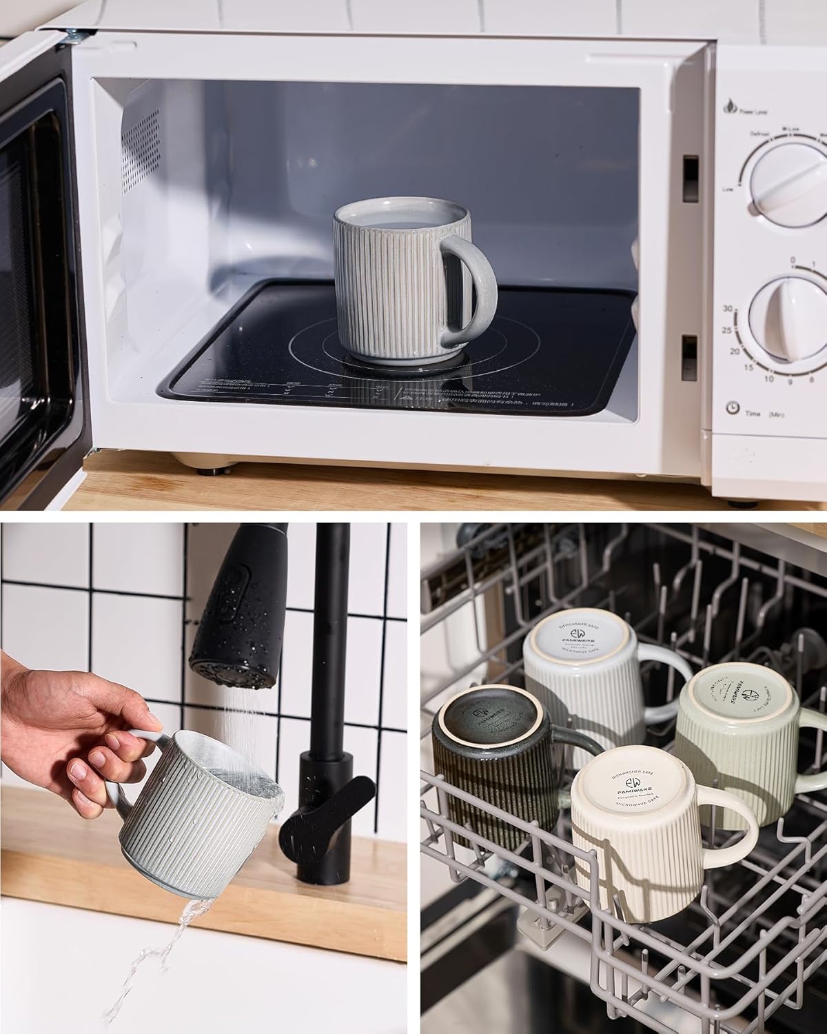 - DISHWASHER AND MICROWAVE SAFE: Famiware coffee cups are made of quality stoneware and have been tested for safety in both environments by internationally accredited laboratories