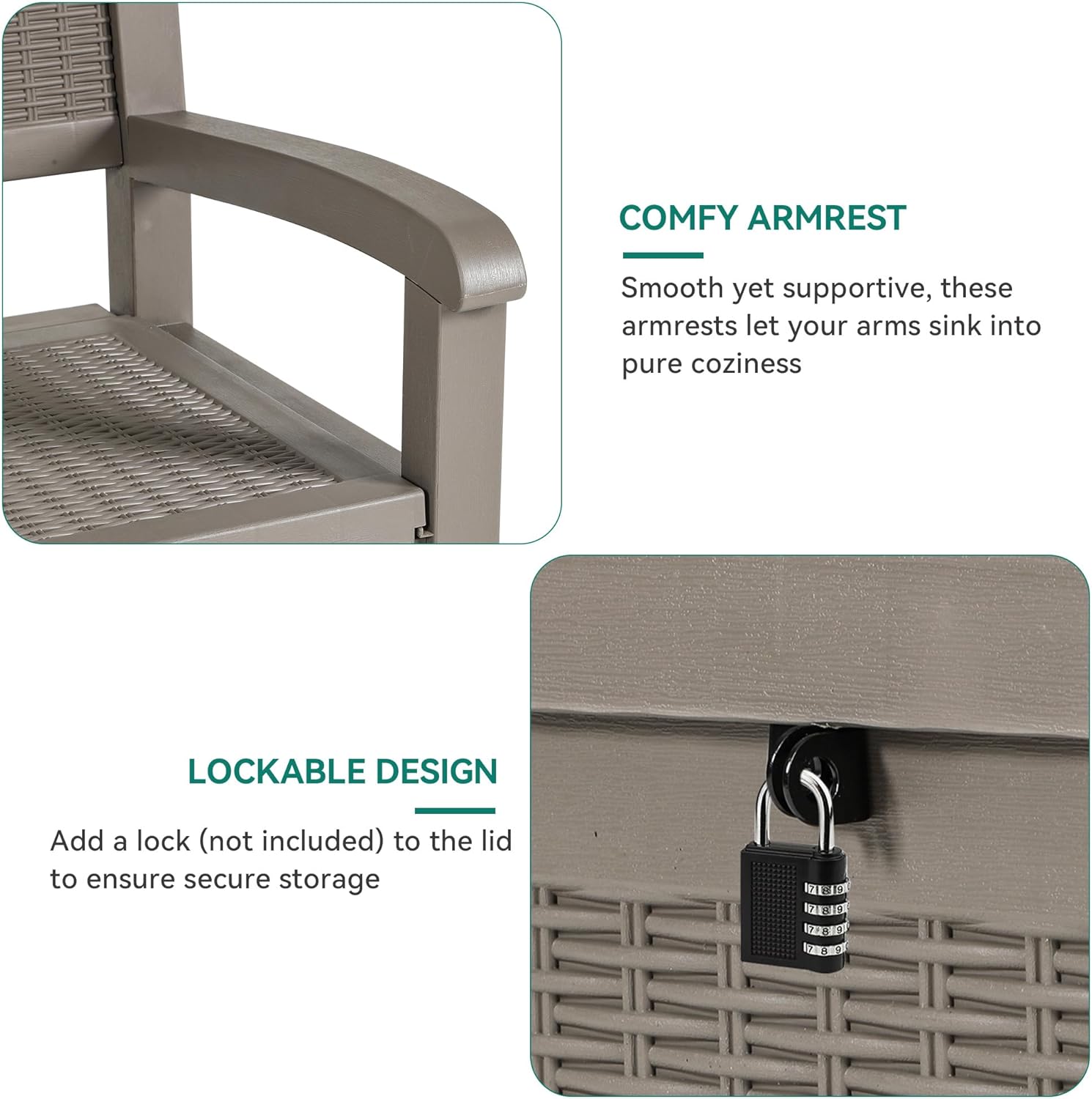 - Secure Storage: Lock up your items with this outdoor bench storage (padlock sold separately); Whether it's pool deck storage essentials or patio storage bench treasures, your items will be reliably kept while you're out and about