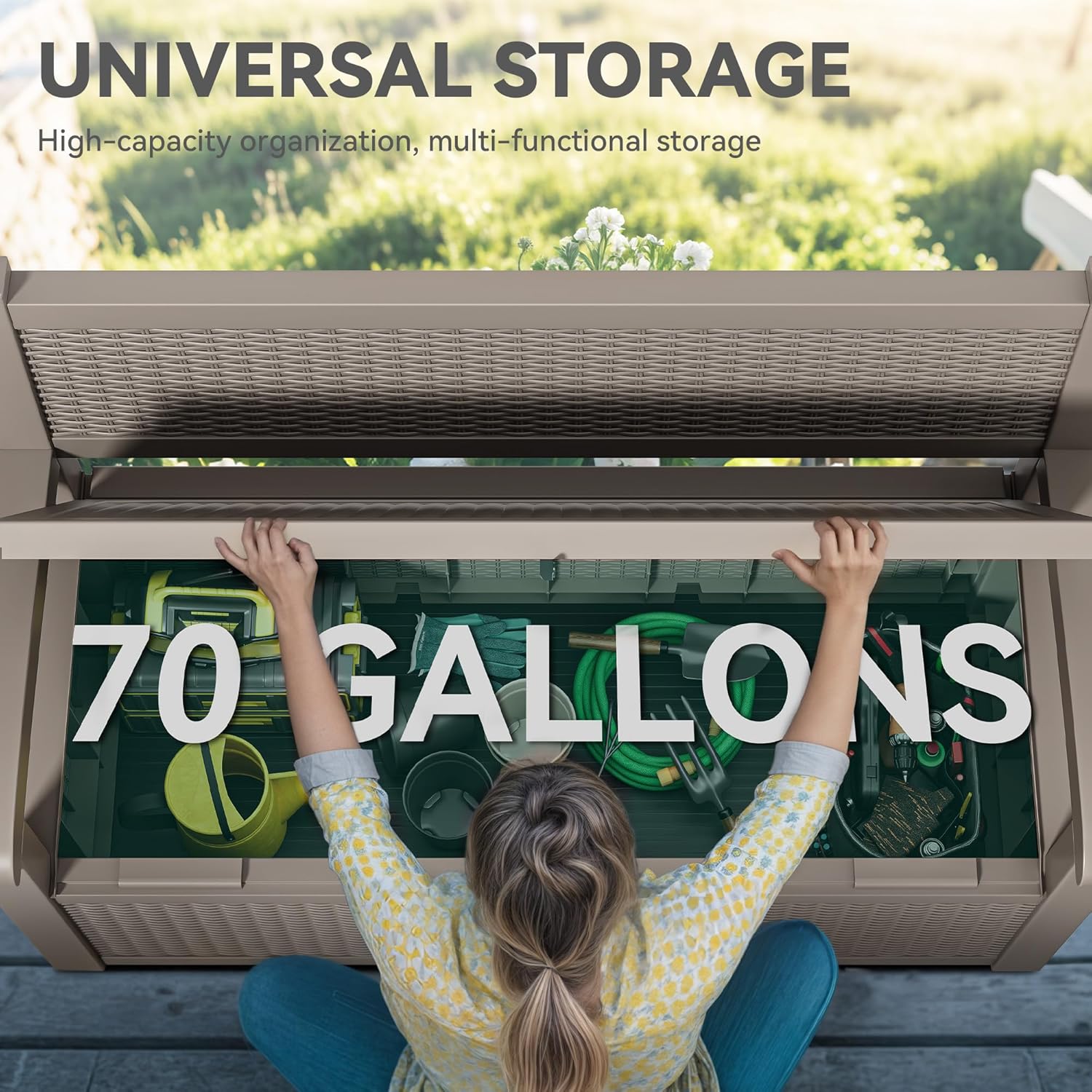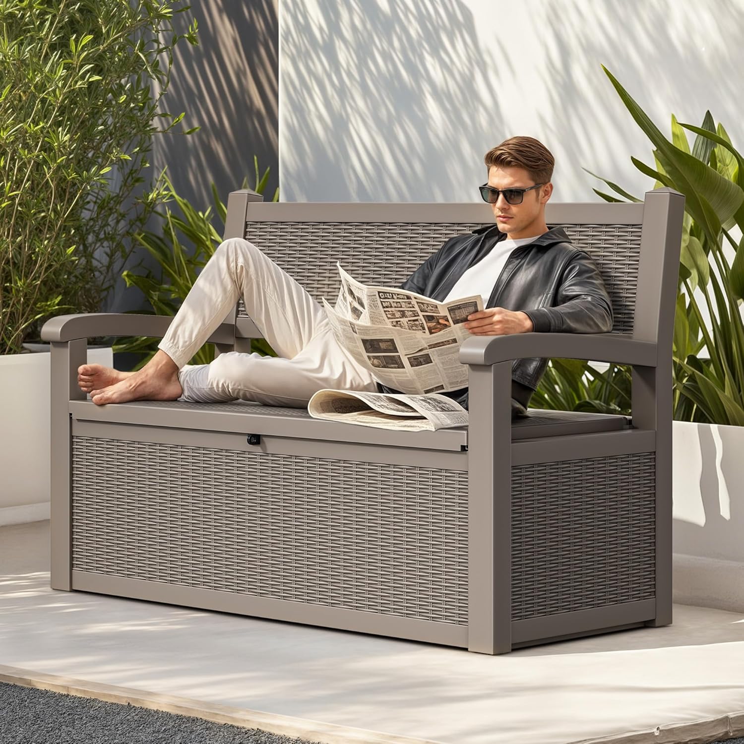 - Quick Assembly: Assemble this storage bench outside in just 30 minutes; Its stylish rattan finish effortlessly blends into any decor, adding a touch of sophistication to your deck or porch with minimal effort