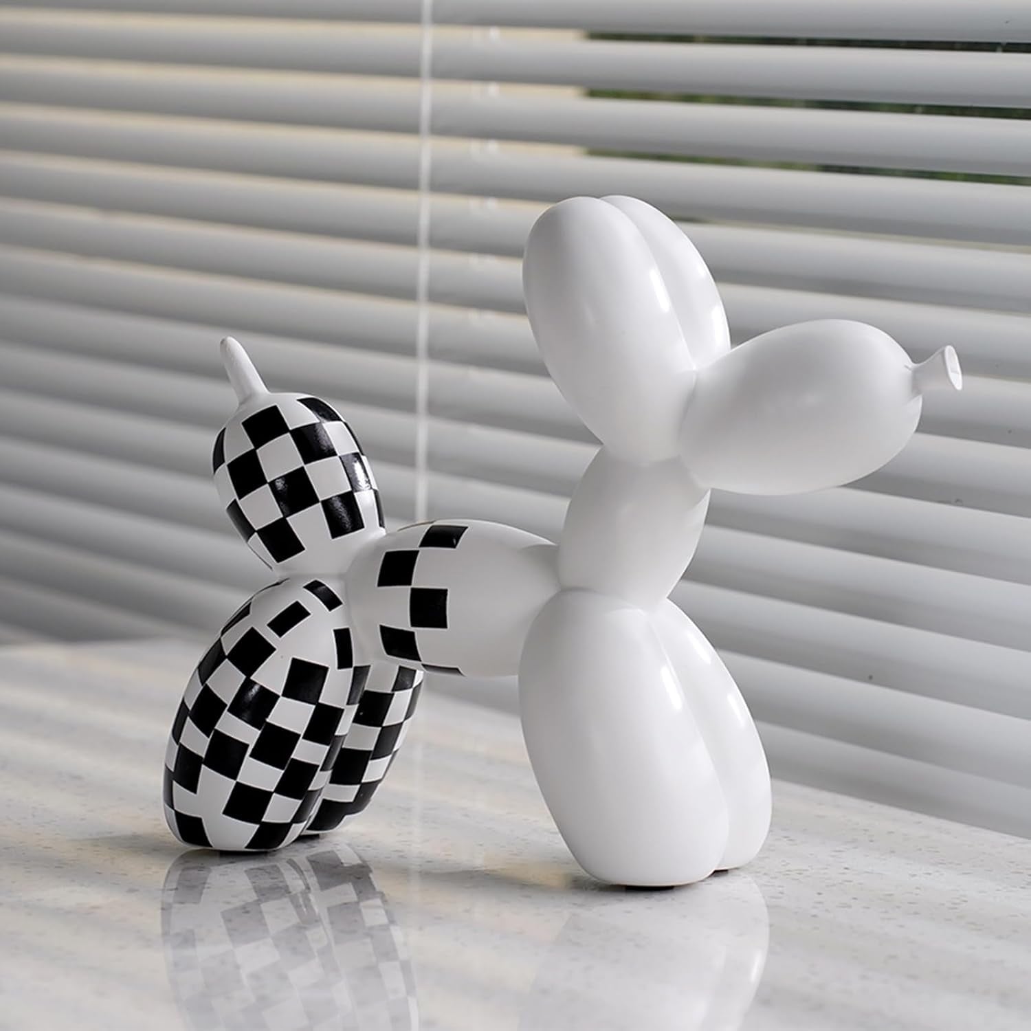 Vilead Resin Balloon Dog Statue with Checkered Pattern,Modern Home Decoration Trendy Animal Art Ornaments,Collection Figurine Bedroom Living Room Office Desktop Sculpture