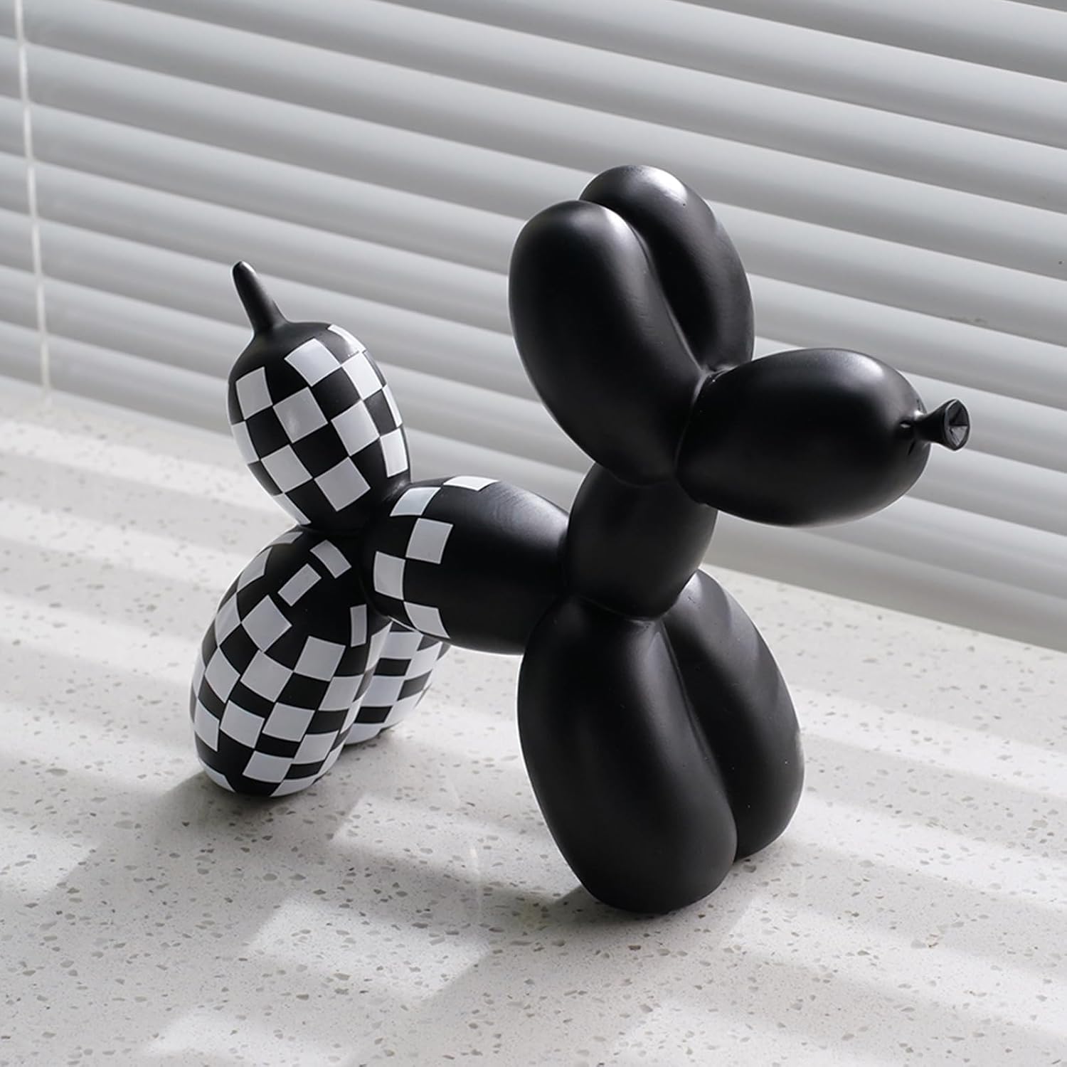 Vilead Resin Balloon Dog Statue with Checkered Pattern,Modern Home Decoration Trendy Animal Art Ornaments,Collection Figurine Bedroom Living Room Office Desktop Sculpture