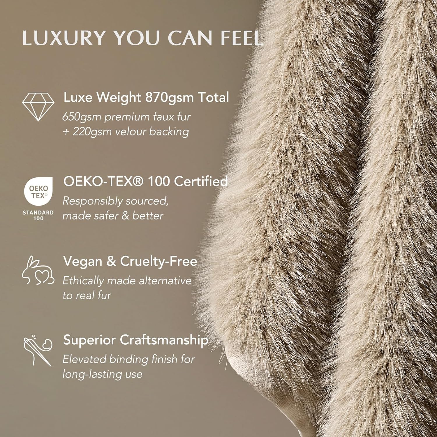 - SUMPTUOUSLY THICK & WARM - This soft, fluffy throw blanket features 870gsm total weightβ650gsm faux fur and 220gsm velvety reverseβoffering cloud-like warmth and plush coziness you can feel and see.