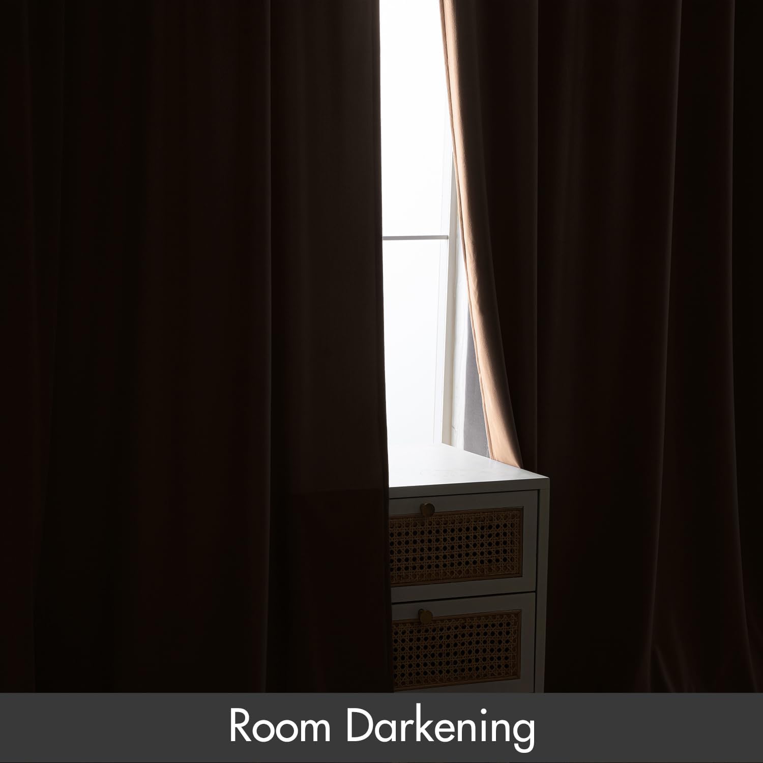 - FUNCTION: Thick and heavy blackout curtain drapes can block 60-70% of the sunlight (the darker color works better).These velvet curtains can also reduce noise,stay temperature down in summers,keep cold wind out in winters to achieve smart energy saving and provide privacy as well.