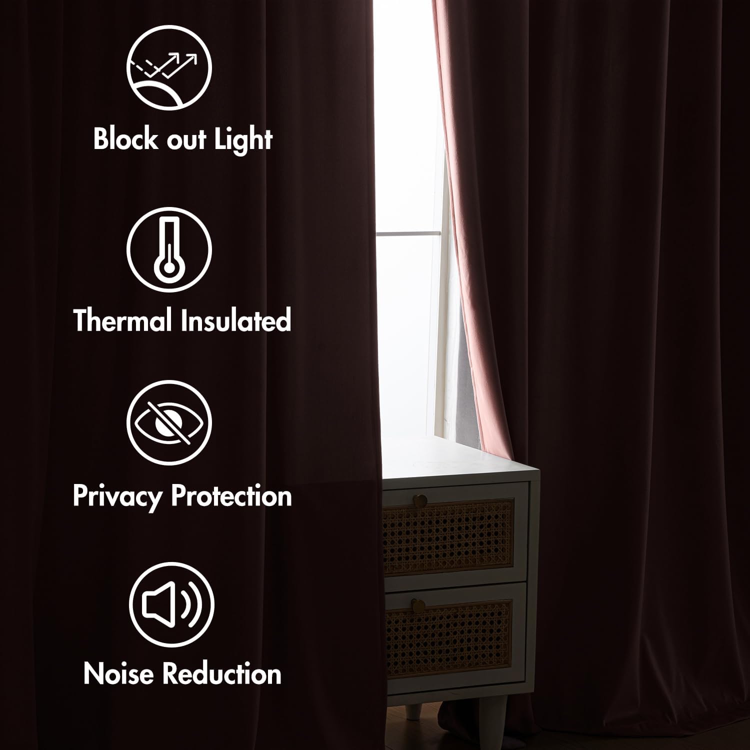 MIULEE Baby Pink Velvet Curtains 90 inches 2 Panels - Luxury Room Darkening Window Drapes for Bedroom Living Room Thermal Insulated Super Soft Blackout, Back Tab Rod Pocket Pinch Pleated, W52 x L90