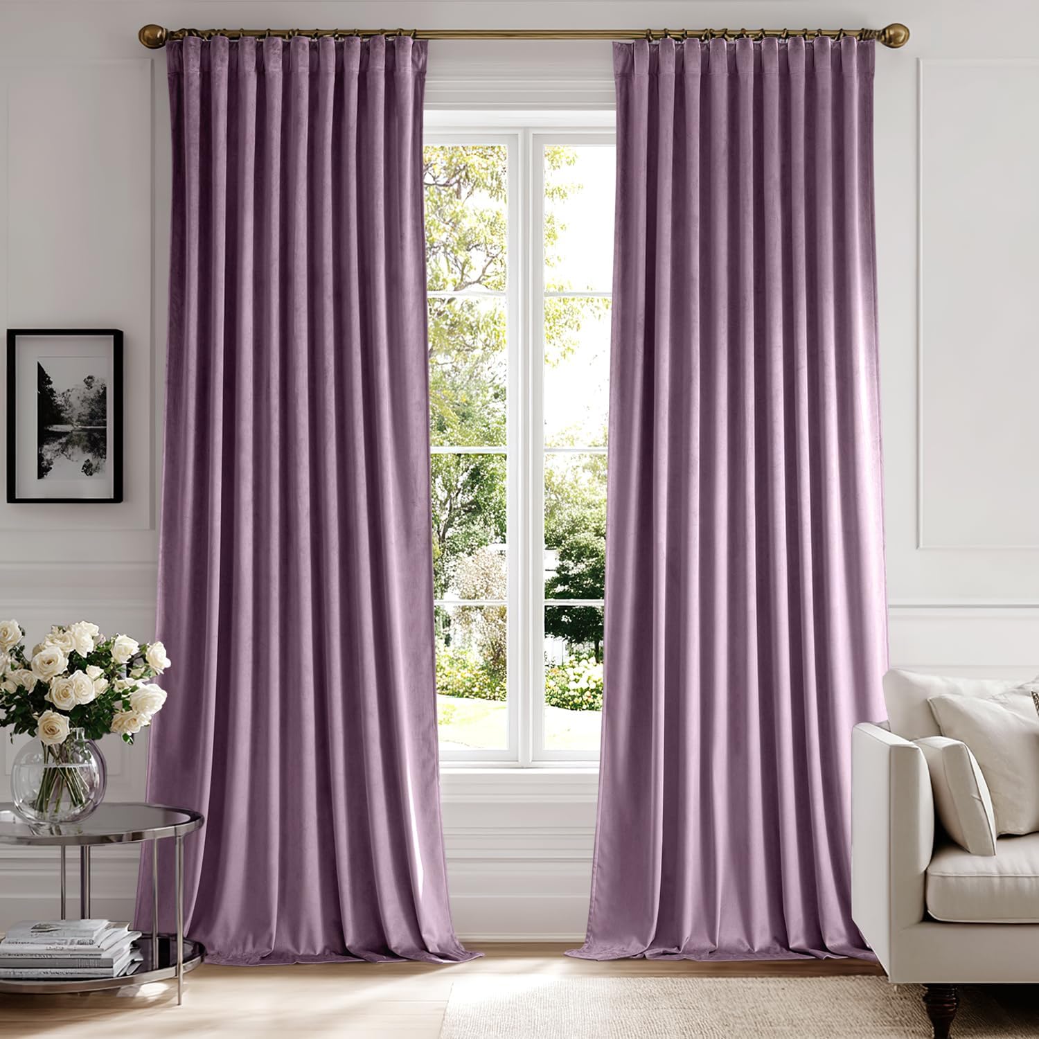 MIULEE Lavender Velvet Curtains 108 inches 2 Panels - Luxury Room Darkening Window Drapes for Bedroom Living Room Thermal Insulated Super Soft Extra Long, Back Tab Rod Pocket Pinch Pleated, Purple