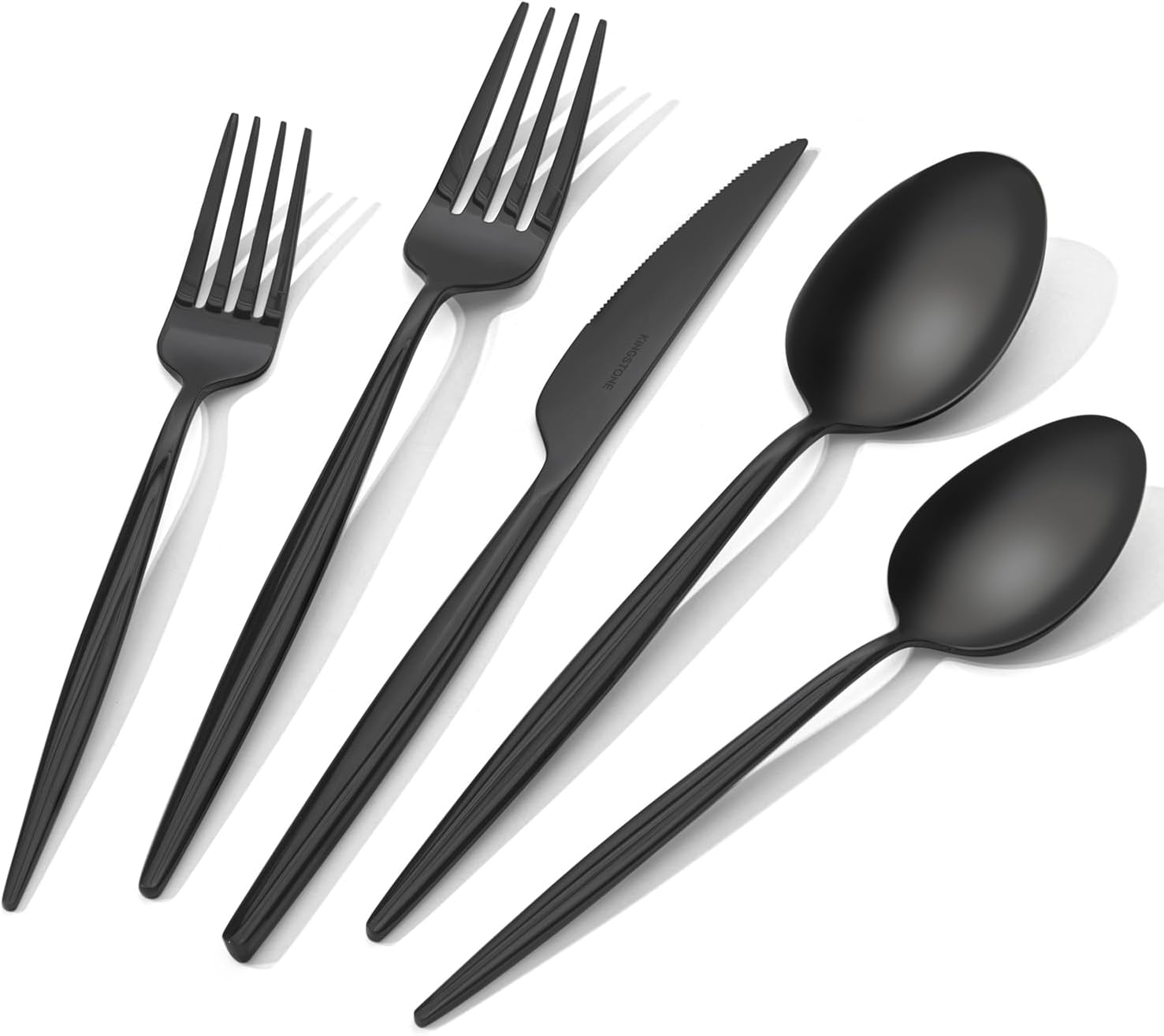 KINGSTONE Silverware Set, 40-Piece Flatware Set Cutlery Set Premium 18/10 Stainless Steel, Tableware Include Forks Knives Spoons for Home Kitchen Restaurant Wedding, Dishwasher Safe,Black